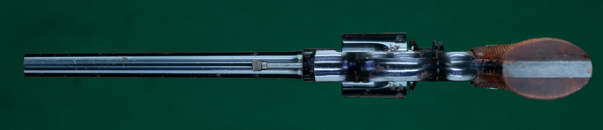| | 7 1/2" tapered round barrel with elevation-adjustable front sight. Polished |