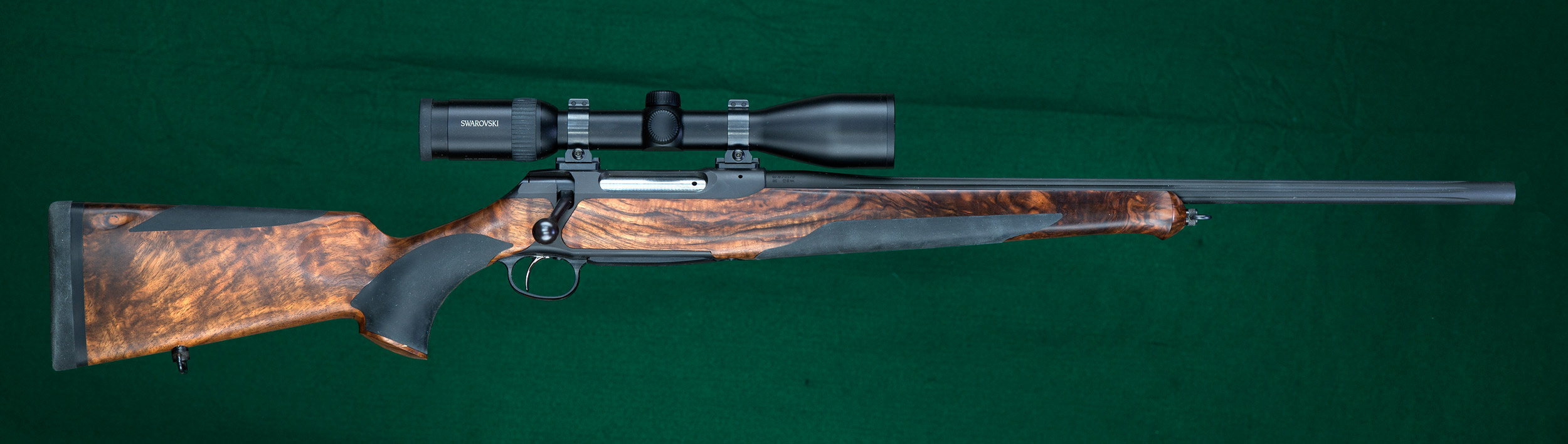 | | classic comb, sling swivels and solid black NECG recoil pad. Bolt jeweled by |