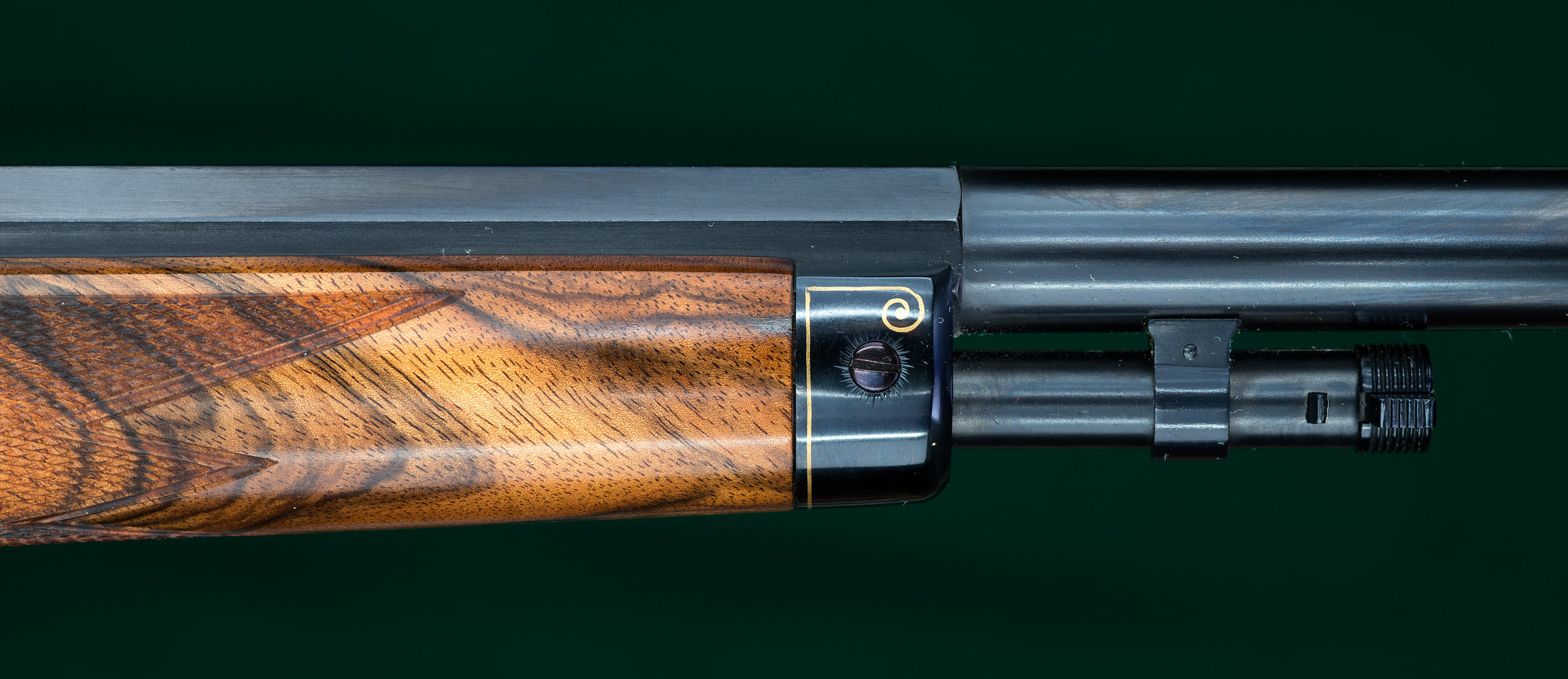 | | pattern checkering with mullered borders, S-curved pistol grip, and steel |