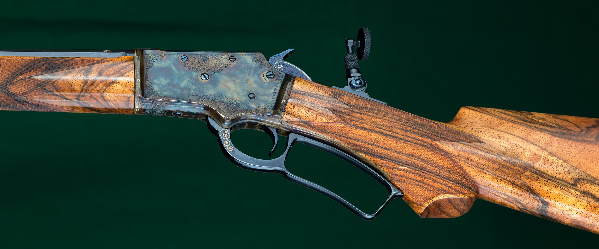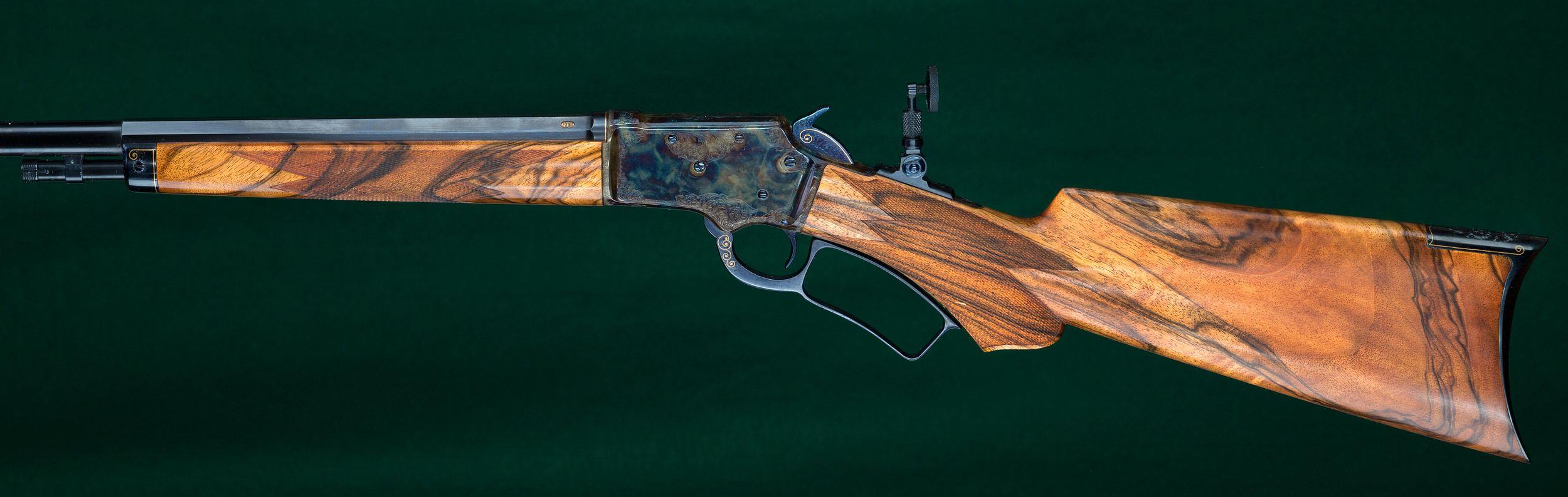 | | fire-blued hammer, oversized takedown knob and Lyman No.1A tang peep |