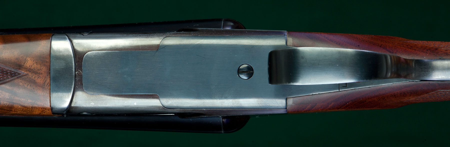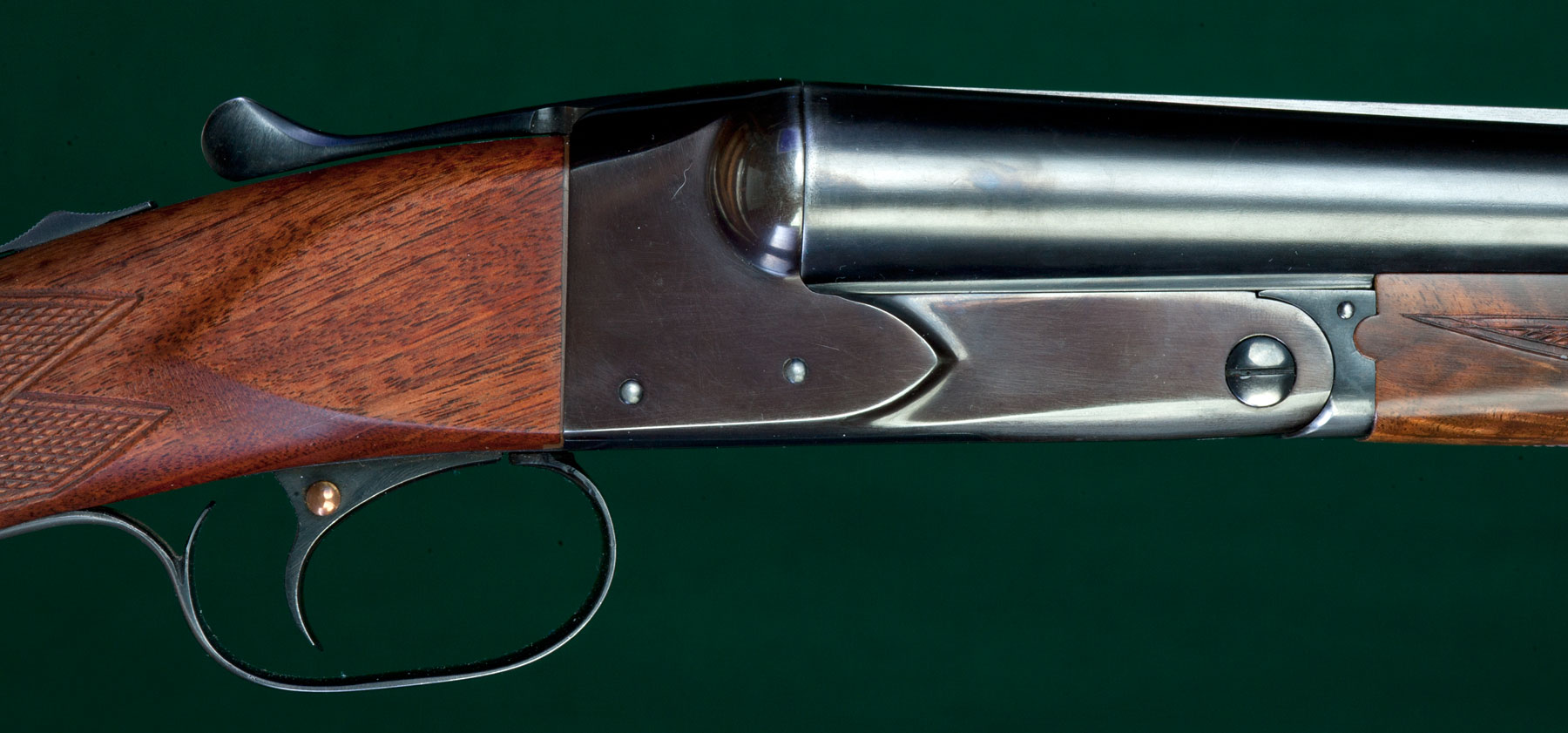 | walnut stock with checkered pistol grip and splinter forend. Auto Ejectors. |