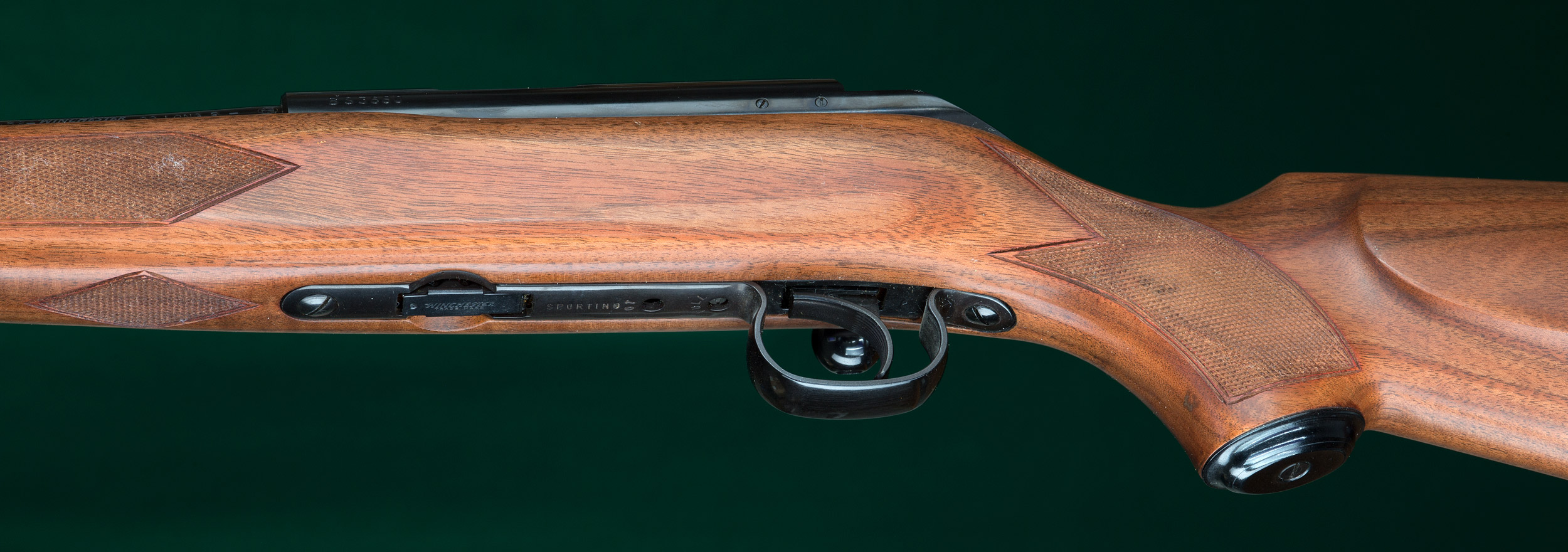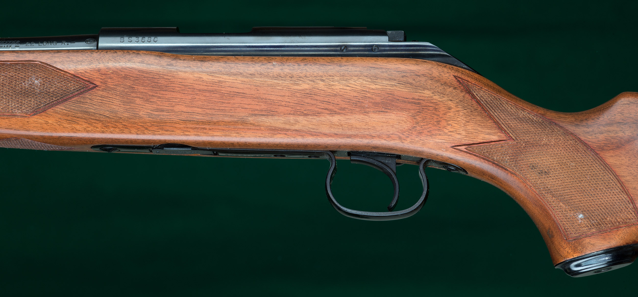 |   | and checkered blued steel buttplate. 13 1/2" pull. Micro-Motion trigger. |