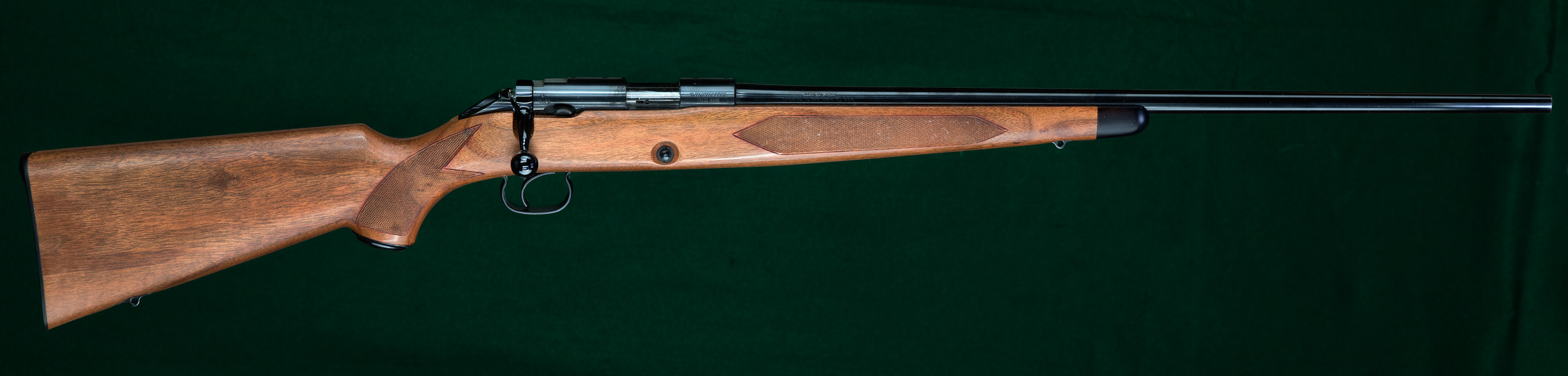 |   | 24" tapered round barrel. Walnut stock with ebony forend tip, point-pattern |