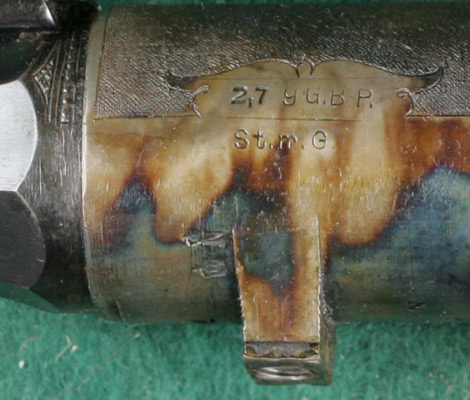 | 23" octagon-to-round barrel of Krupp steel with full-length matted solid rib, |