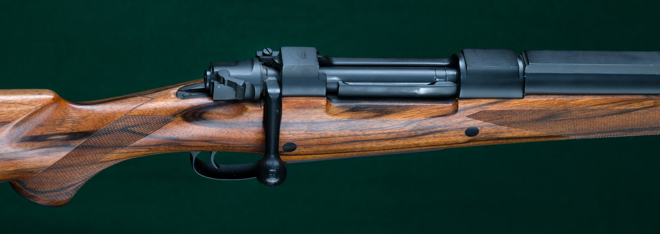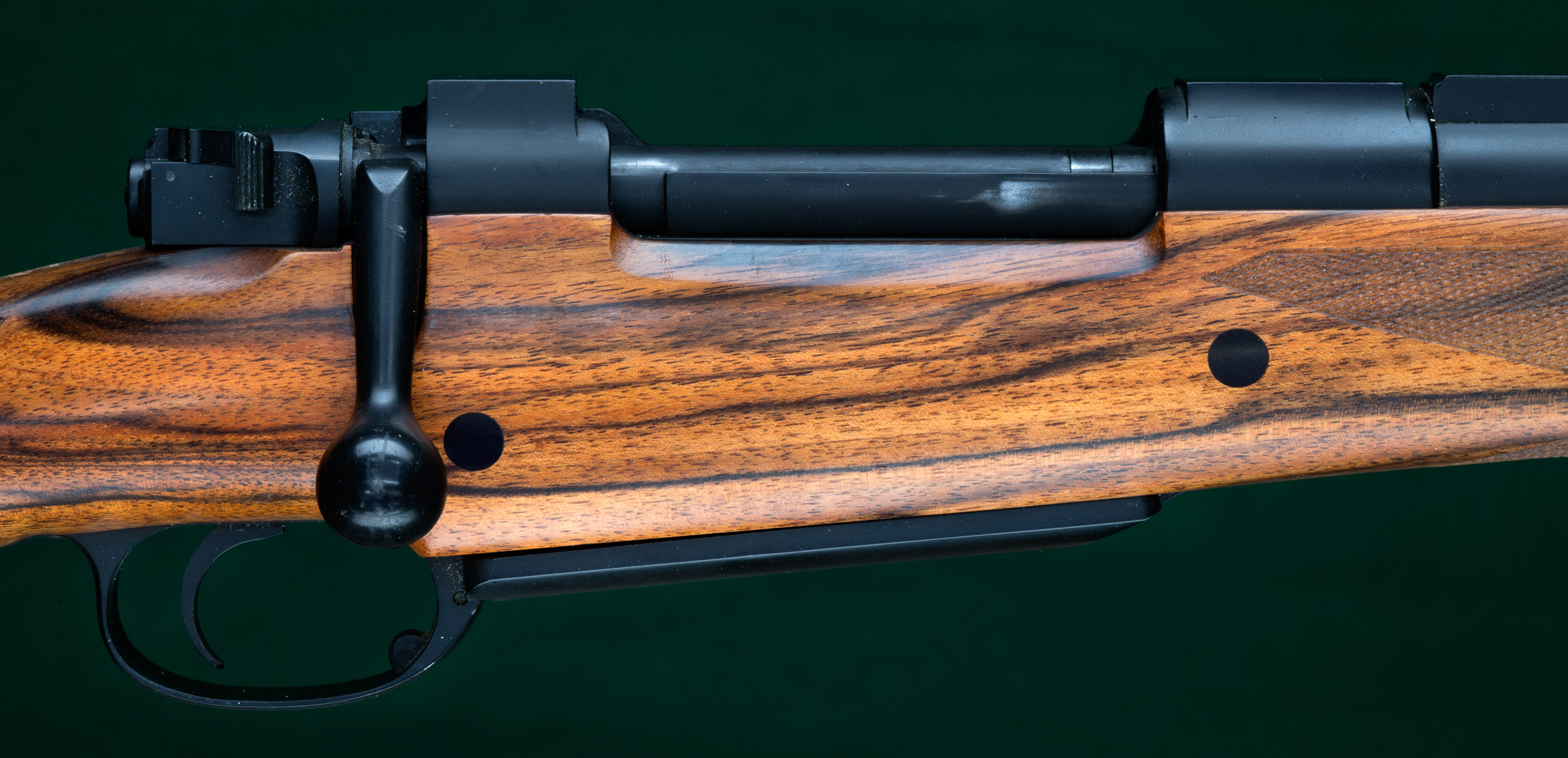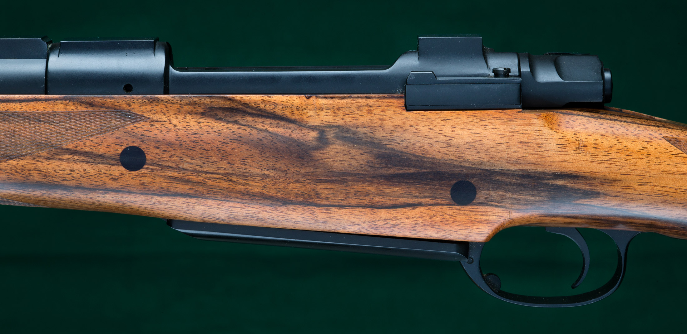 checkering, barrel tie-down, double recoil crossbolts, discreet glassbedding,