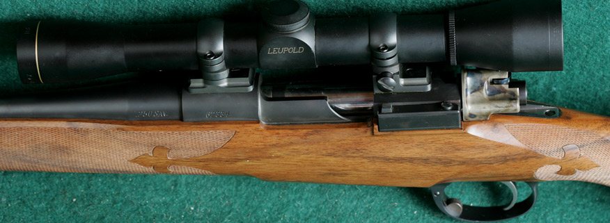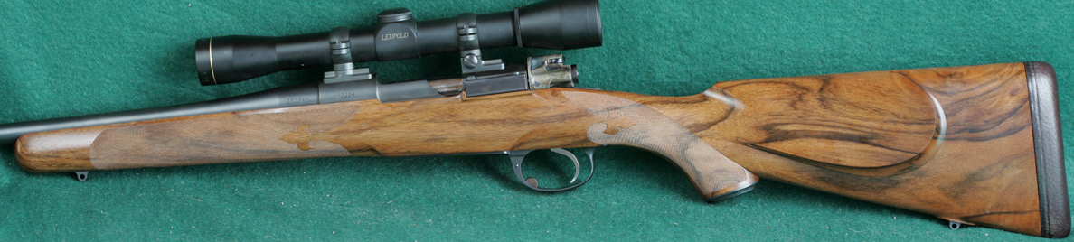 | fleur-de-lys checkering, steel capped pistol grip, inletted swivel studs--- |