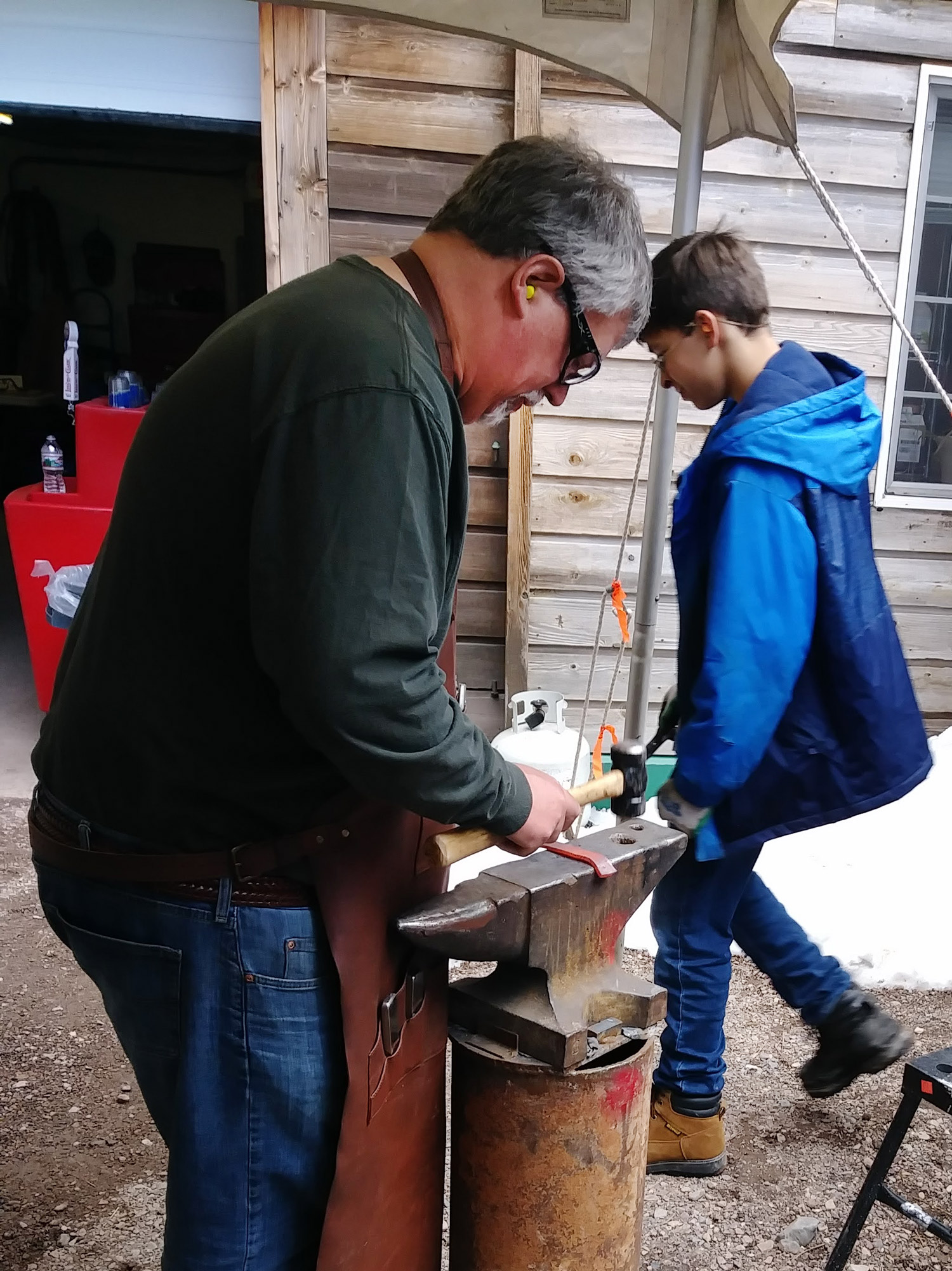 Russell helping our newest blacksmith