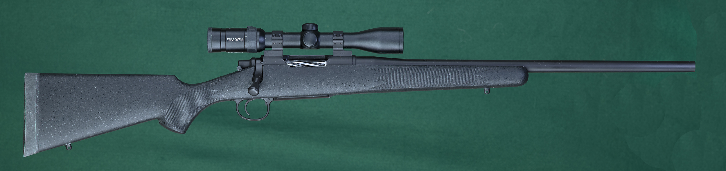 | | 22" tapered round barrel. Textured black composite stock with sling swivel |