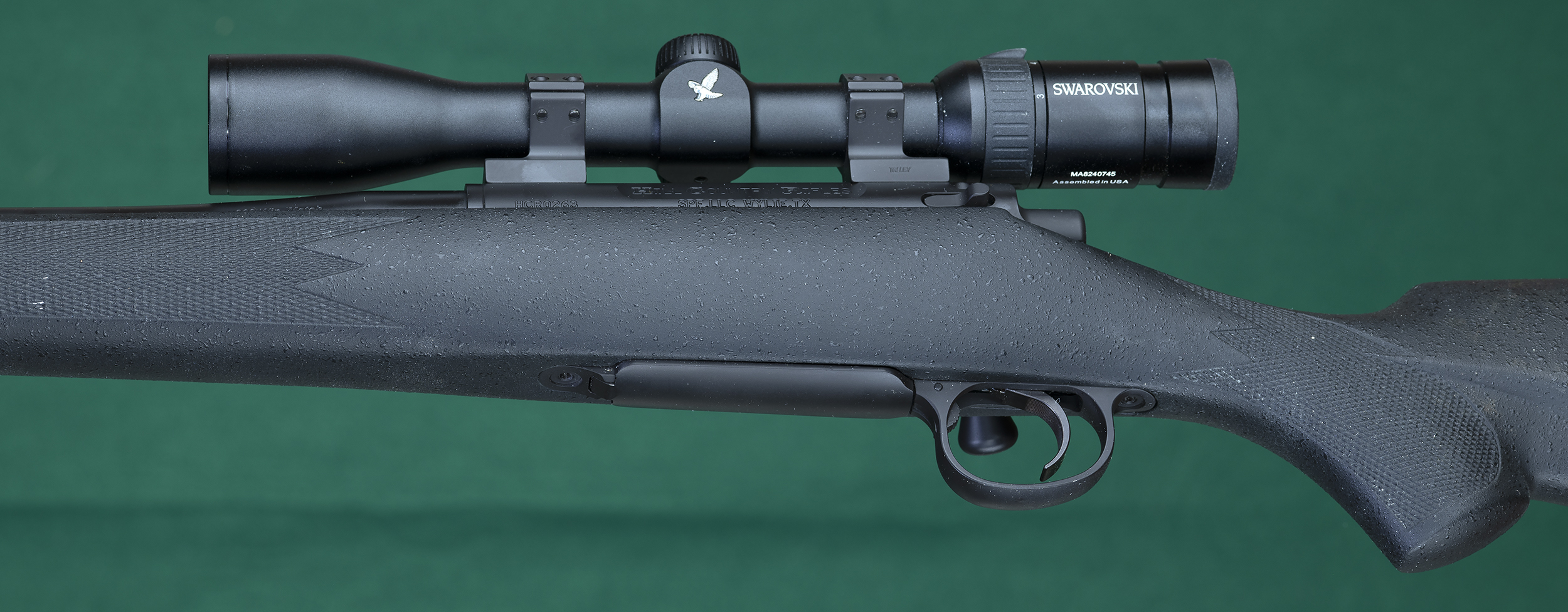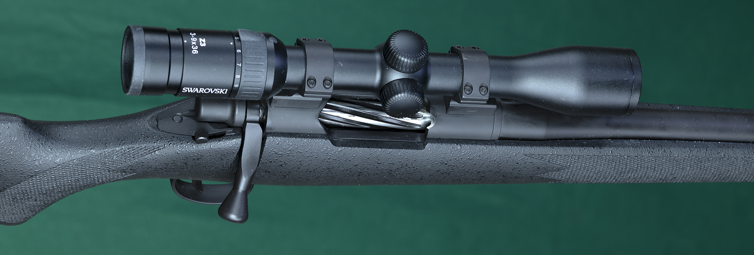 | | Hinged floorplate with release inside triggerguard. Swarovski Z3 3-9x36mm |