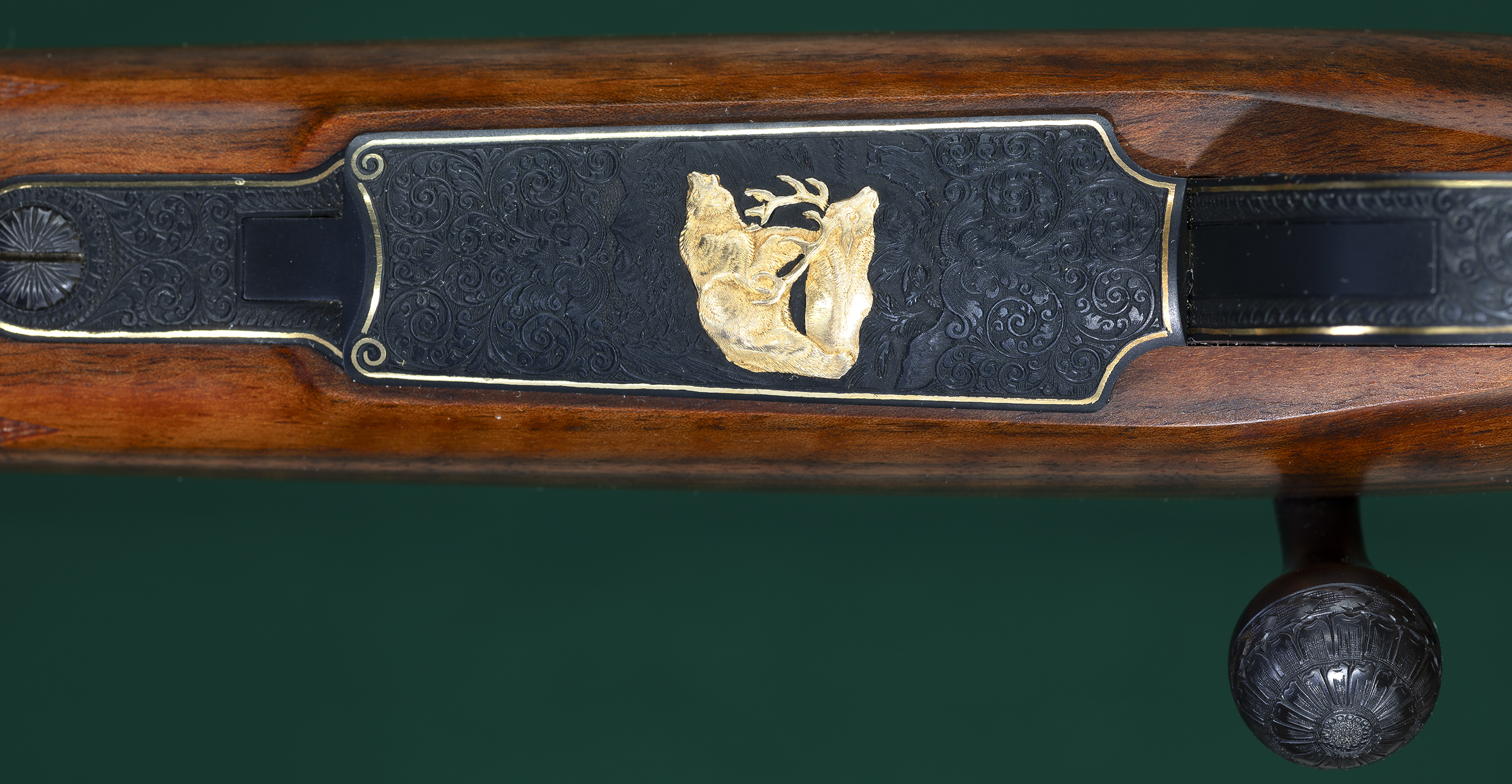 | engraved by Franz Marktl: scroll at muzzle, barrel band, breech, action, |