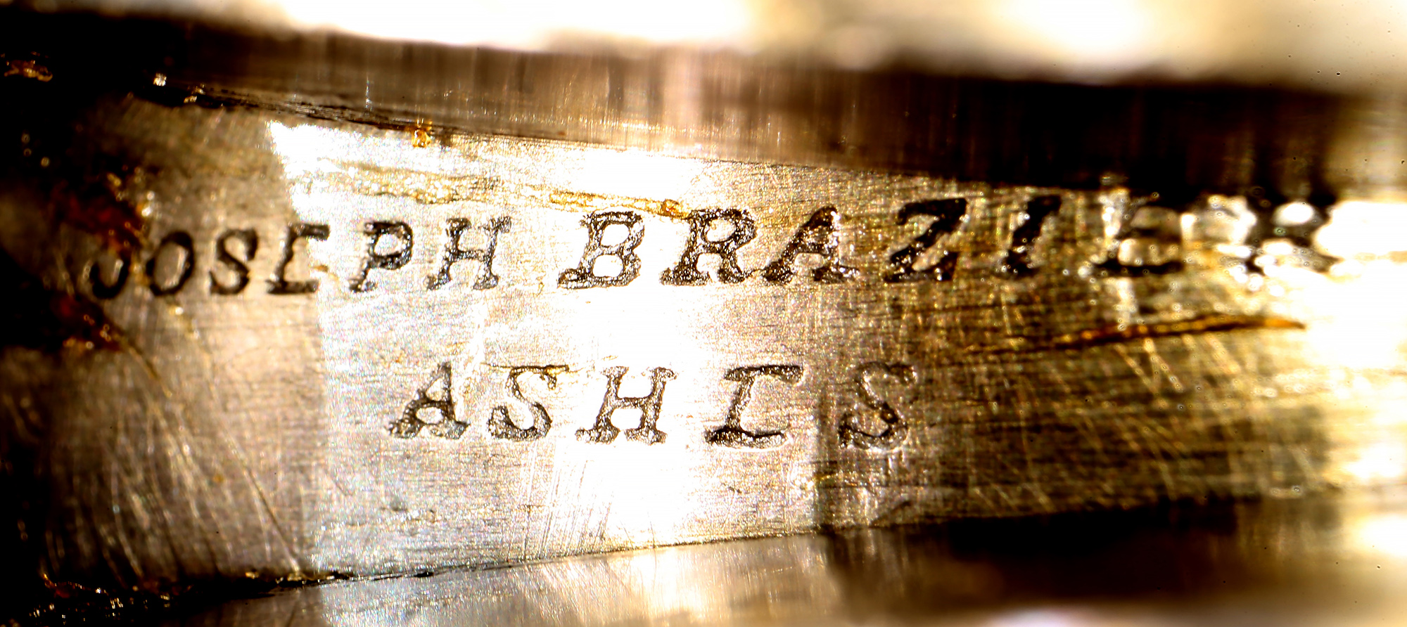 Joseph Brazier signature on the inside of a Holland & Holland Royal sidelock plate.