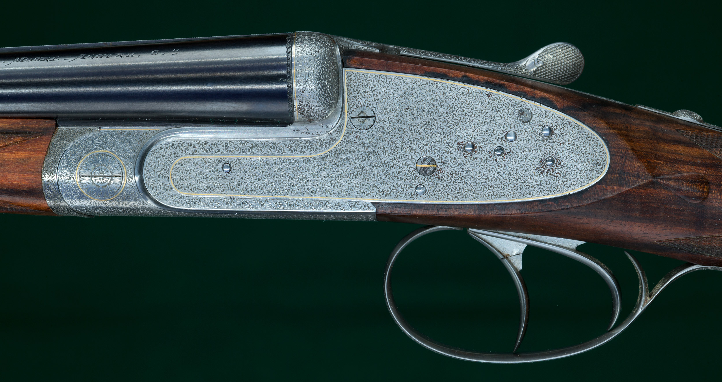 | | straight English grip, and vacant gold initial oval. Coin-finished bar-action |