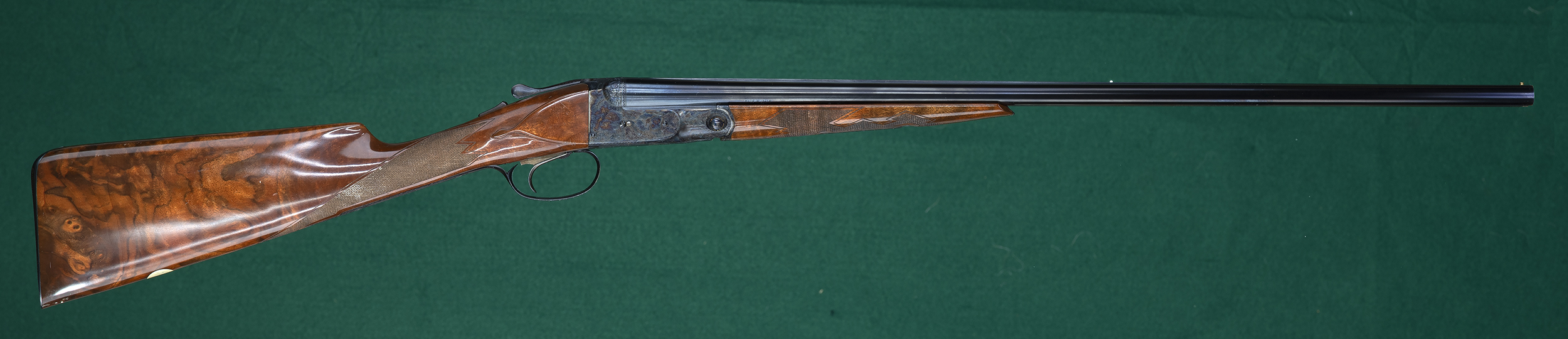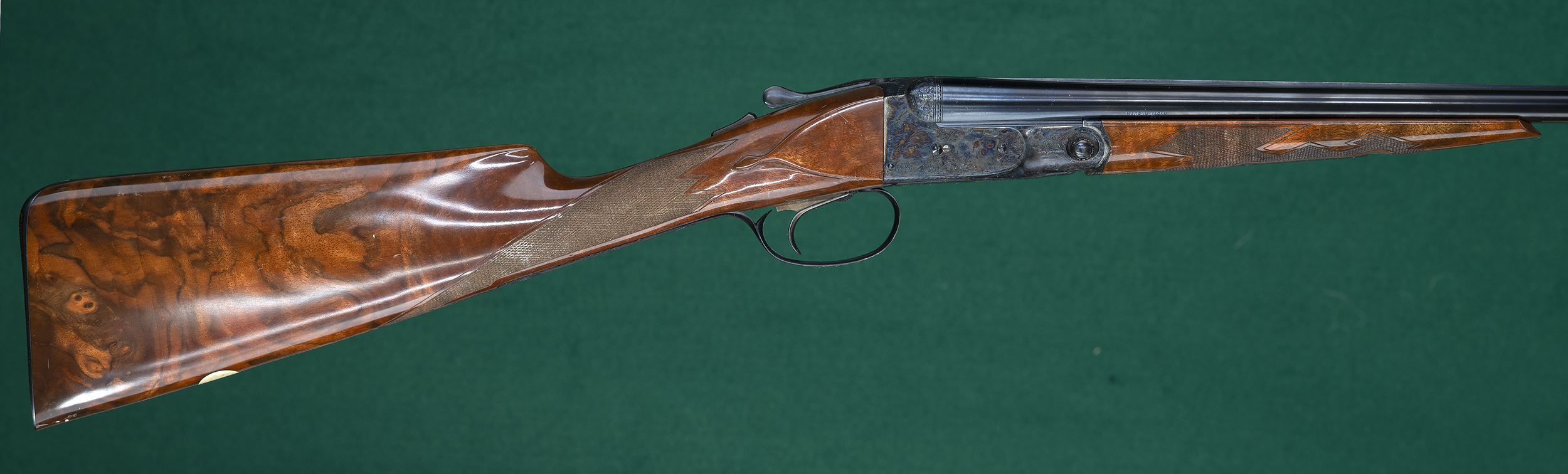 | walnut stocks with Deeley-latched splinter forend, straight English grip, |