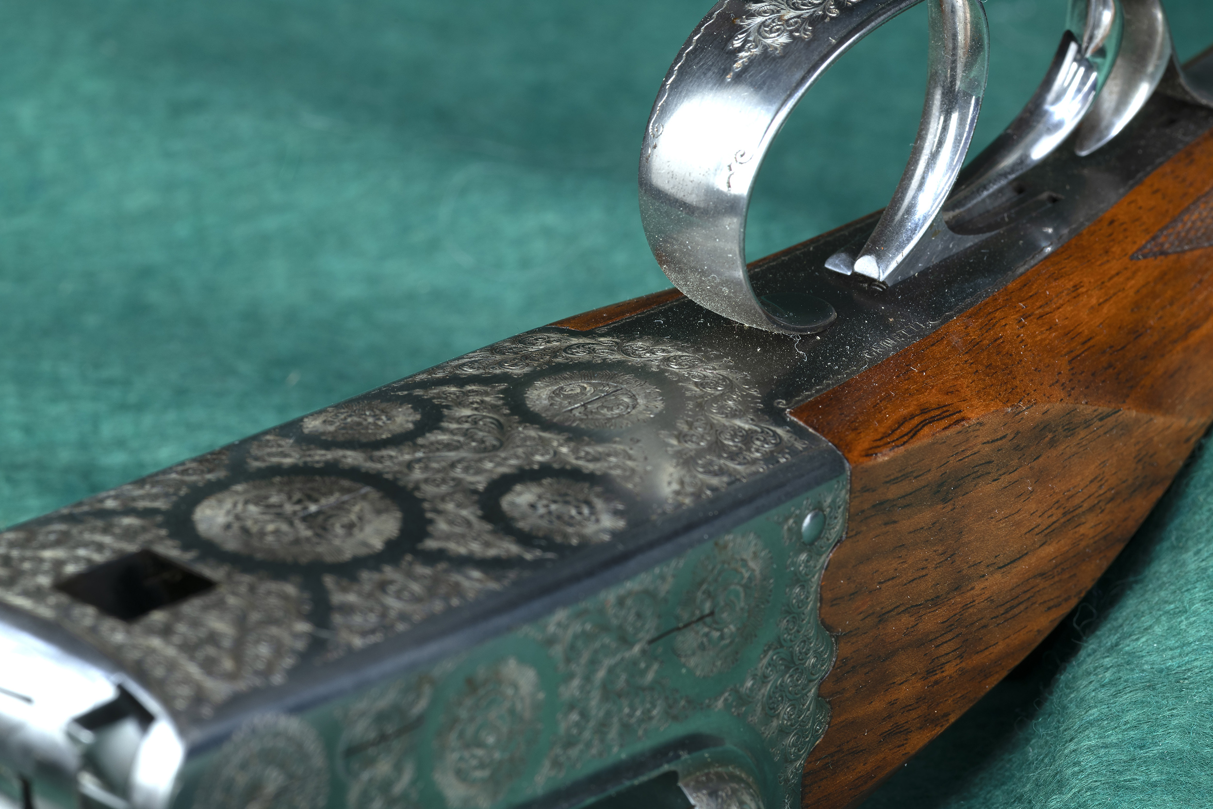 | | beaded-edge triggerguard, with fine English rose & scroll engraving by |