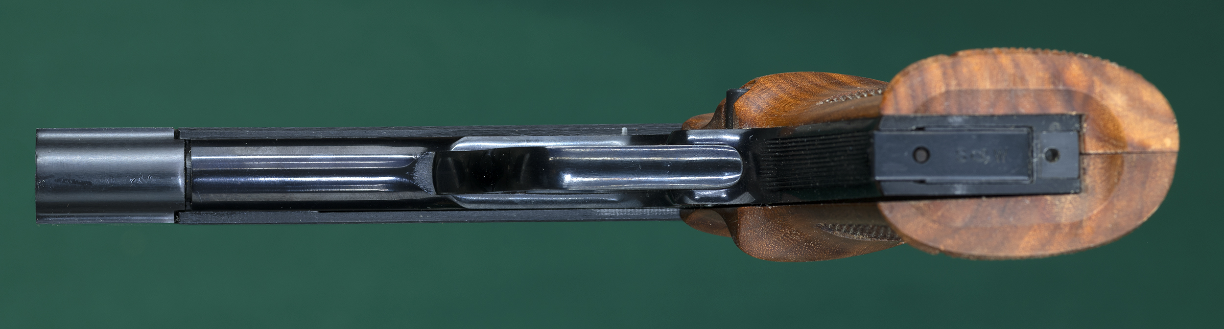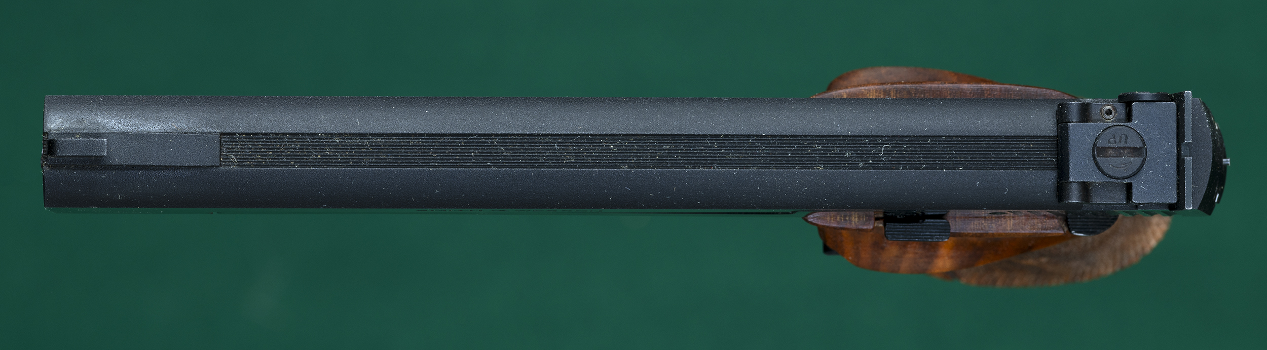 | | 5 1/2" heavy barrel with undercut Patridge front sight. Adjustable rear sight. |