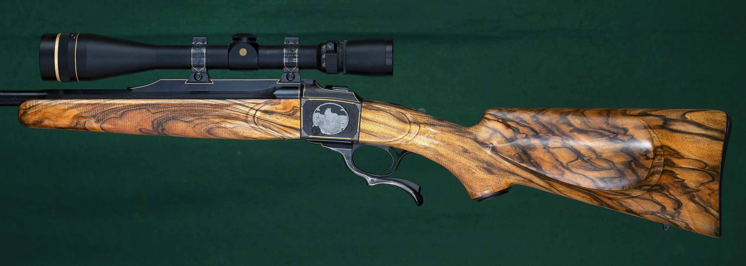 | and checkered steel buttplate. Refined Ruger No.1 action by M Stratton with |