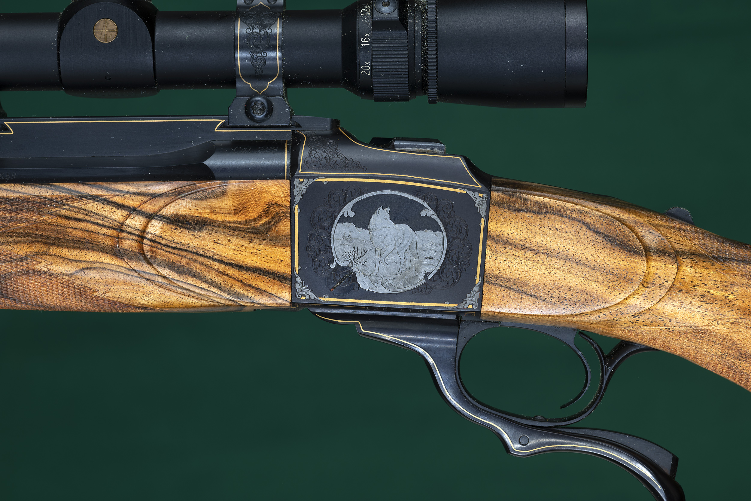| forward knuckle removed, engine-turned breechblock, and finely-inletted |