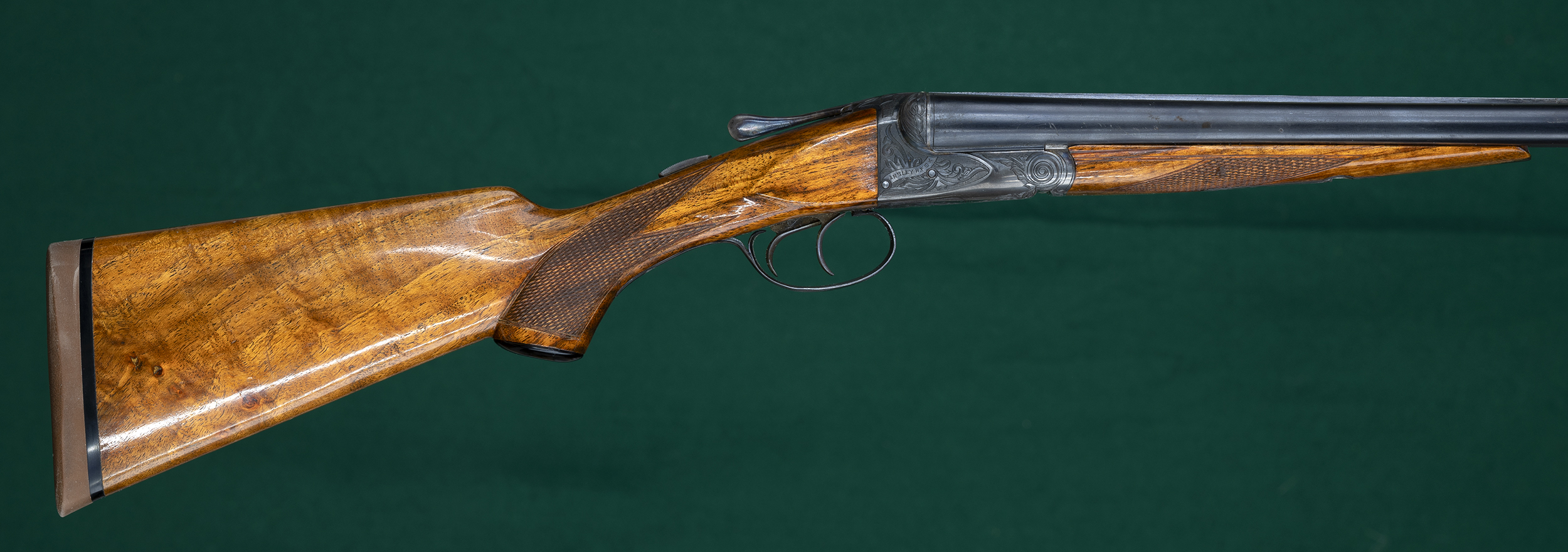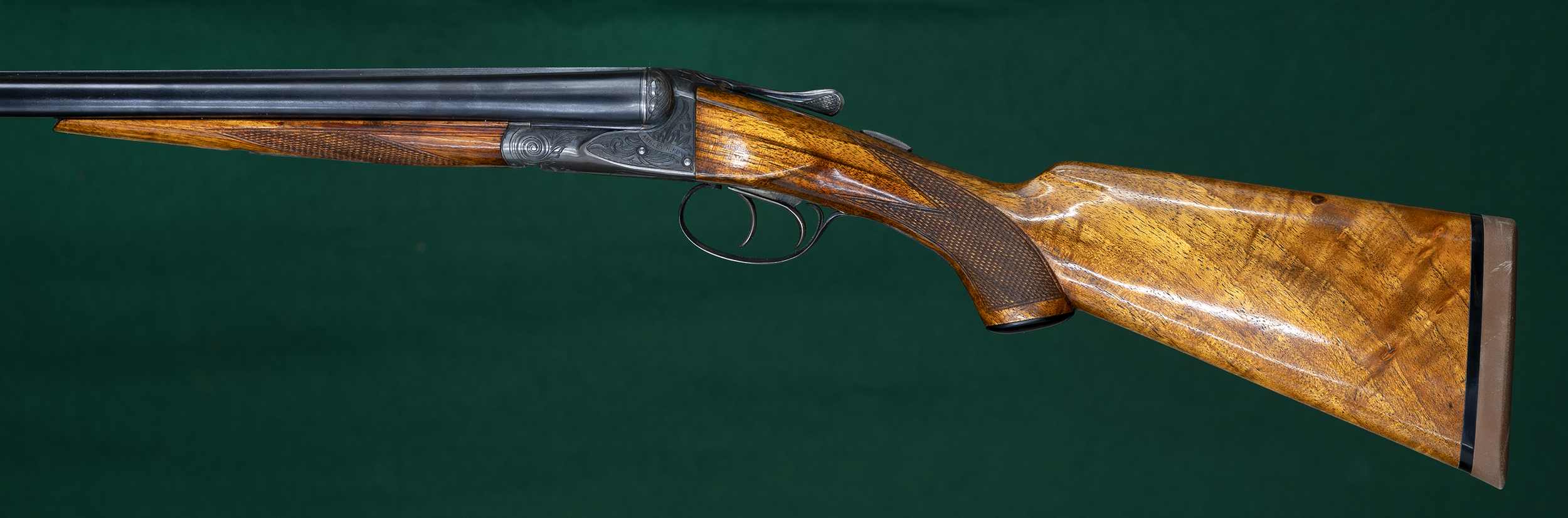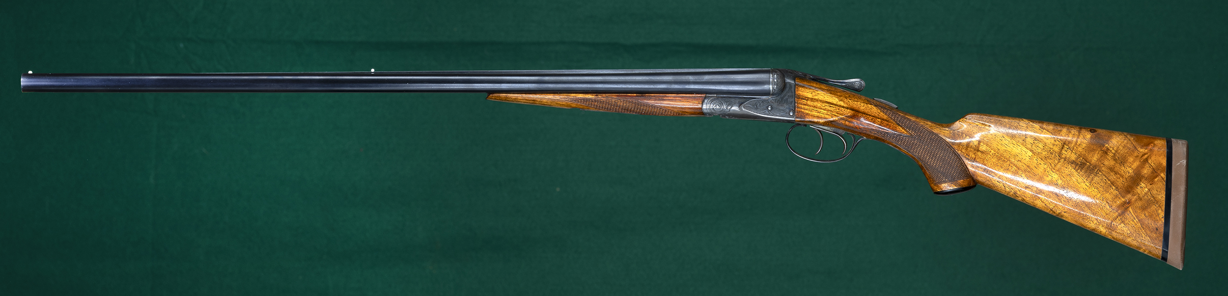 | No cast. Figured European walnut stocks with Deeley-release splinter |