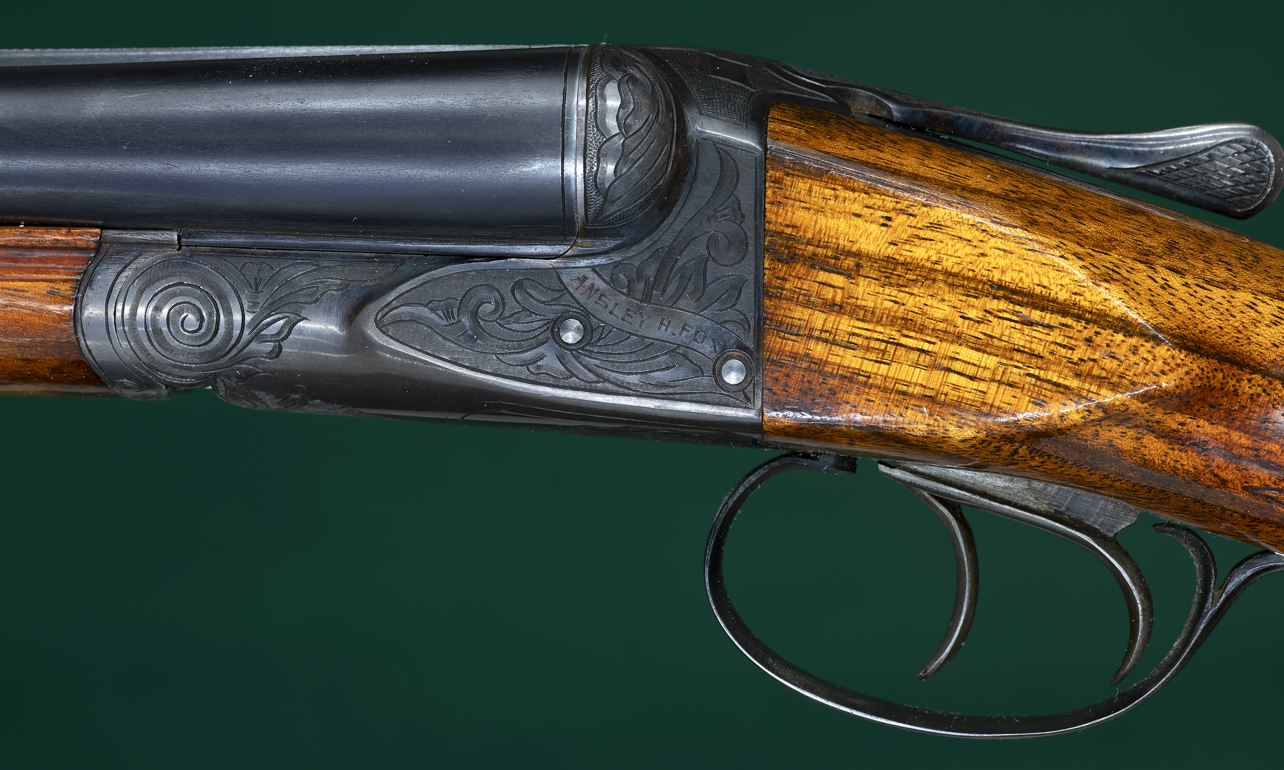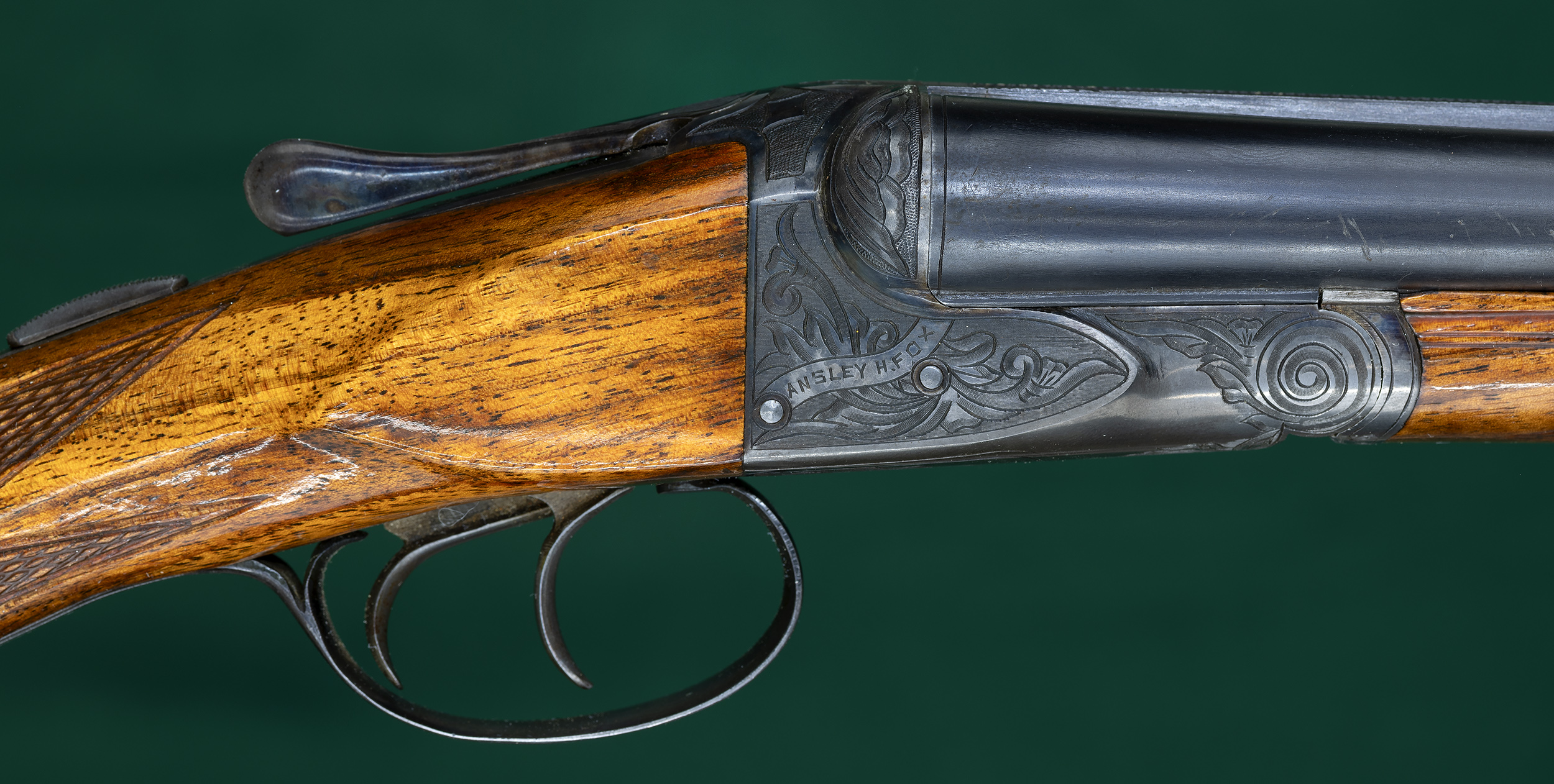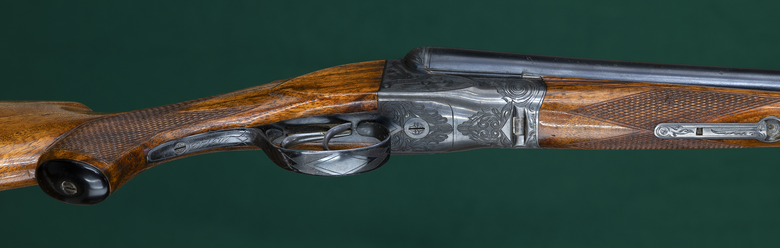 | No cast. Figured European walnut stocks with Deeley-release splinter |