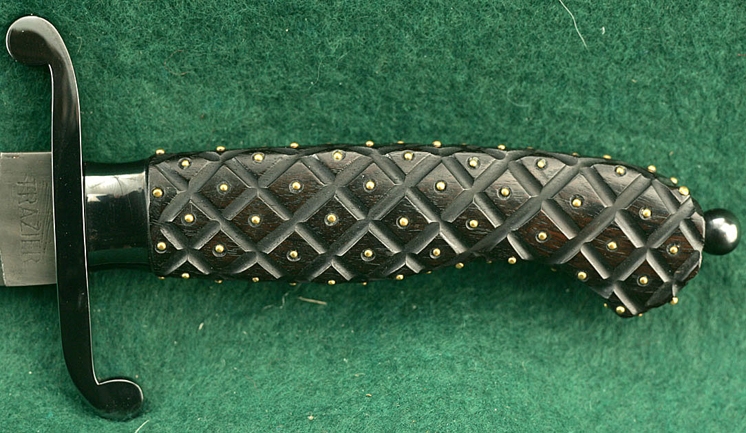 and gold-pique-inlaid ebony grip. S-shaped quillion of blued, polished steel. Overall length: 12 |