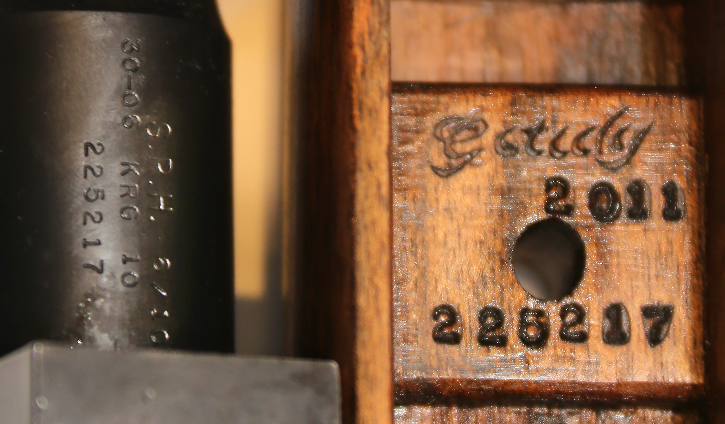 Heilmann's Signature on the underside of chamber end of the barrel. And, Goudy's in the stock under the front receiver ring.