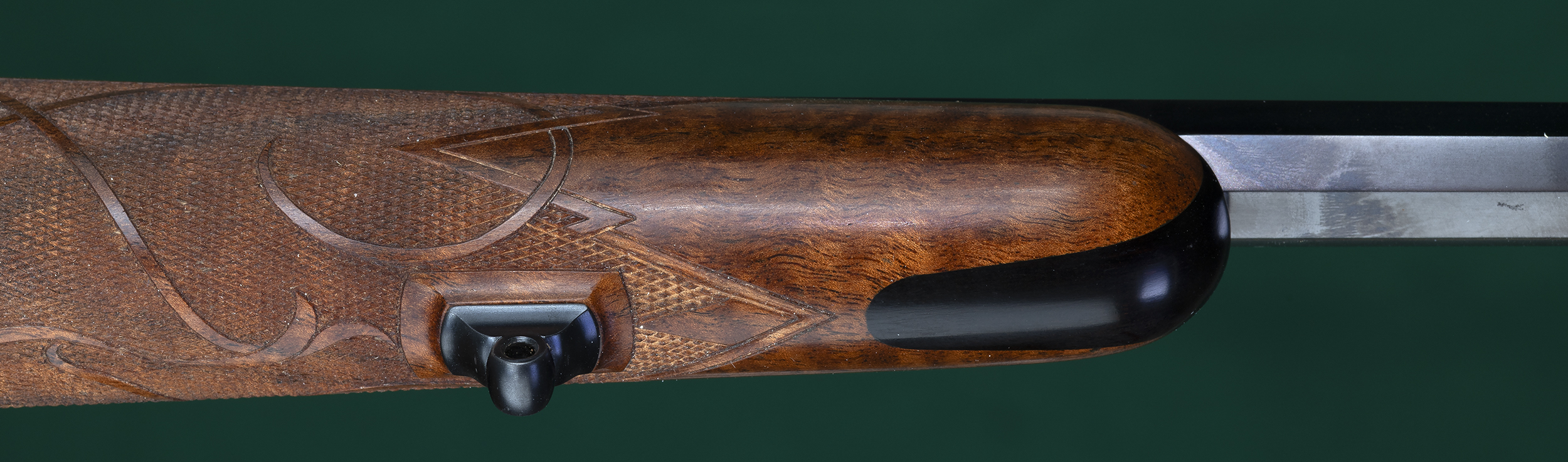 | | wrist, sculptured detail at bolt stop, steel pistol grip cap, vacant gold initial |