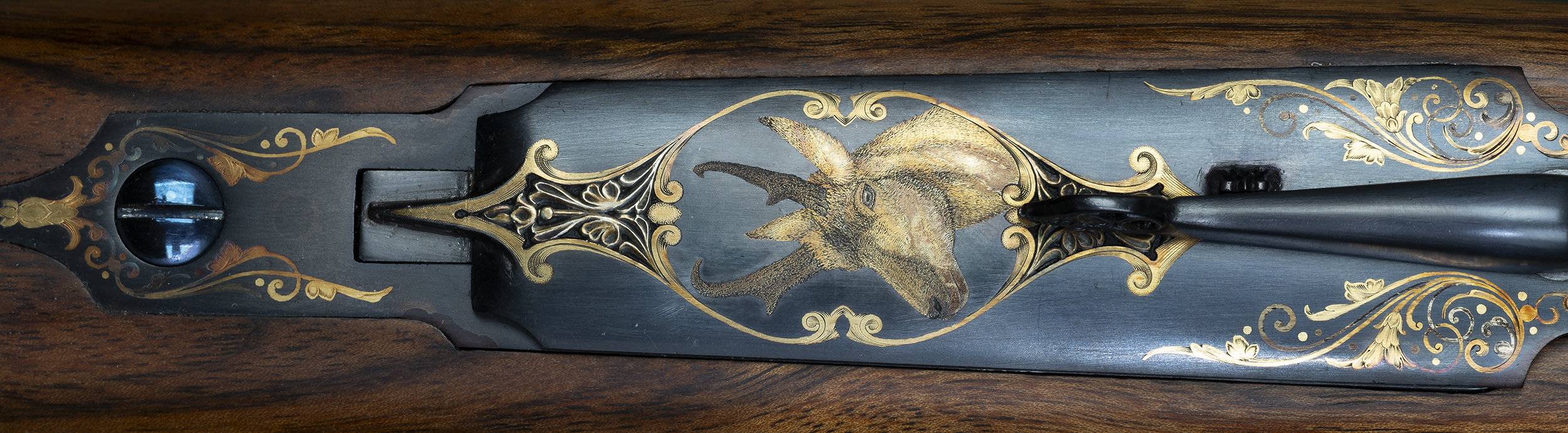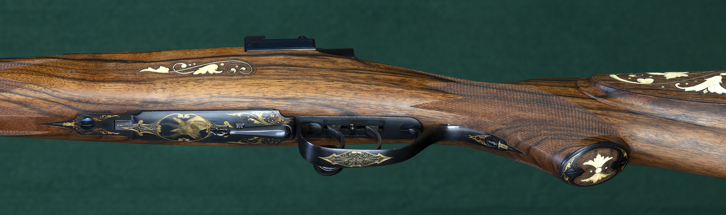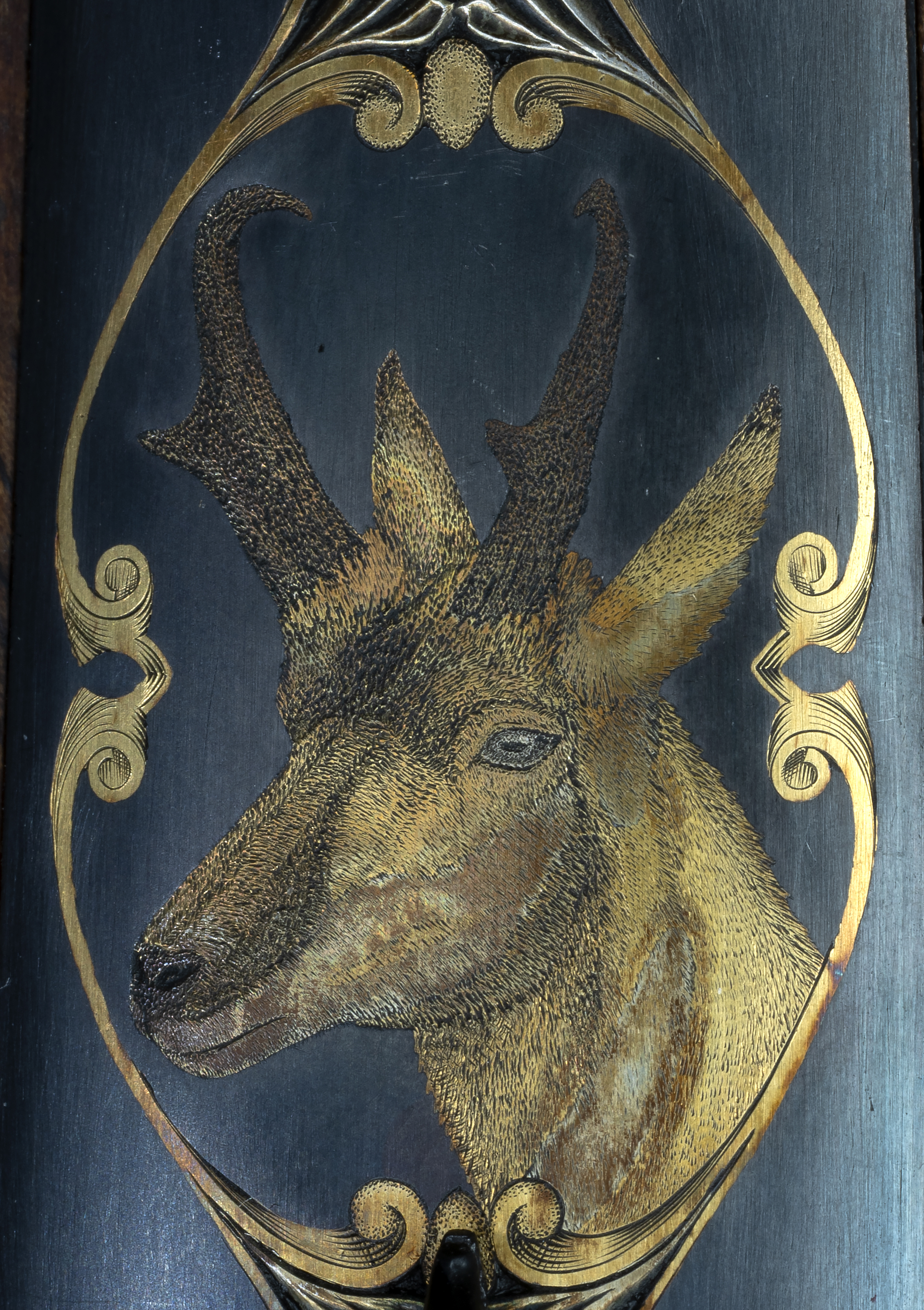| | buttplate---and with pronghorn antelope inlaid in gold on floorplate. |