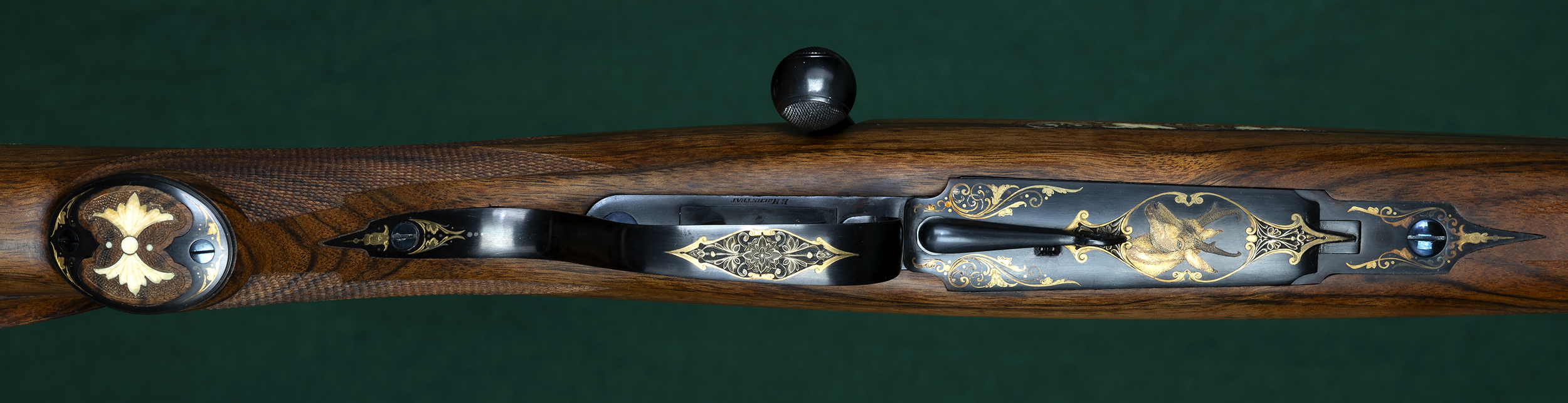 | | buttplate. Extensively engraved and gold inlaid by Brian Hochstrat on front |
