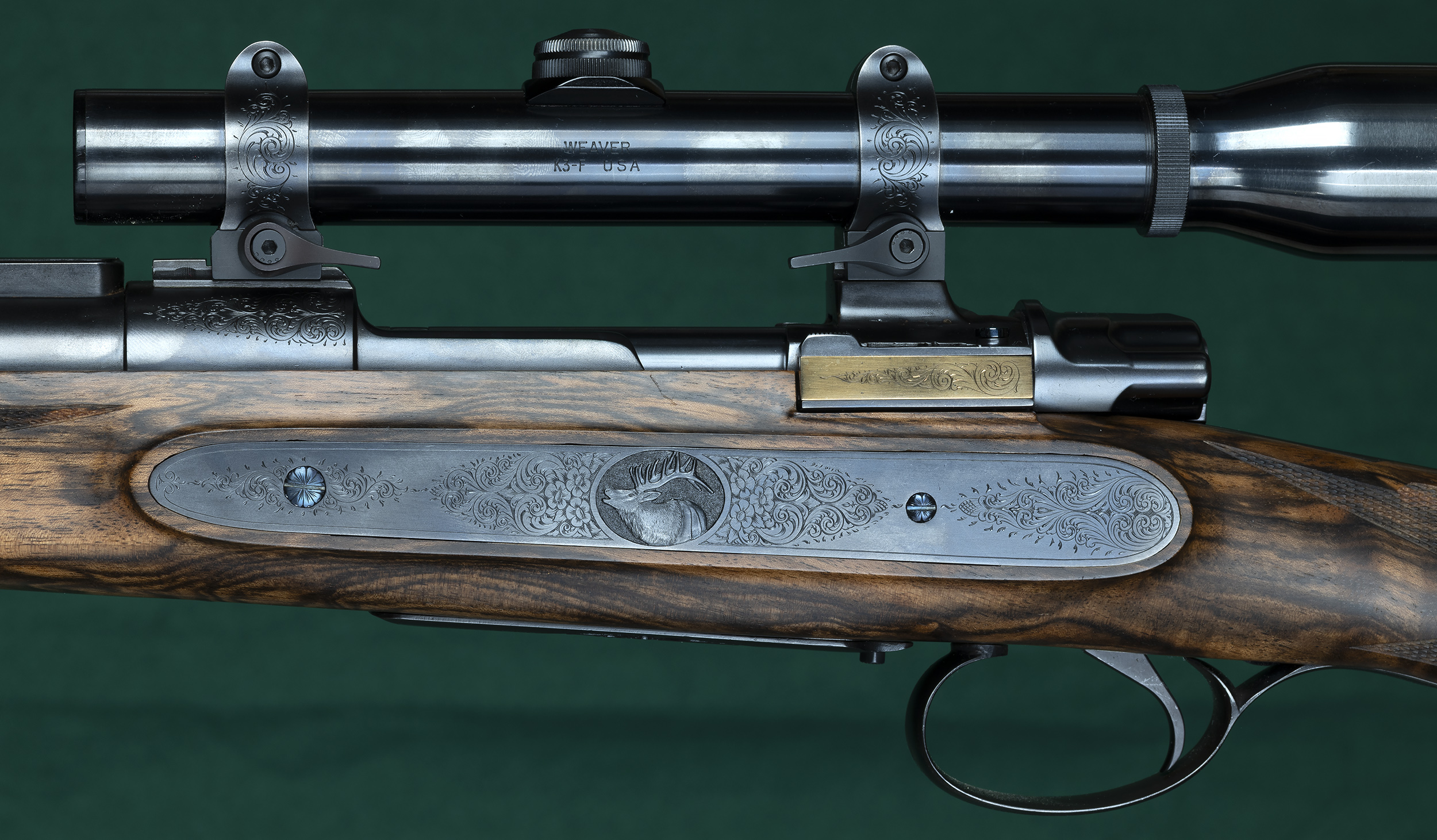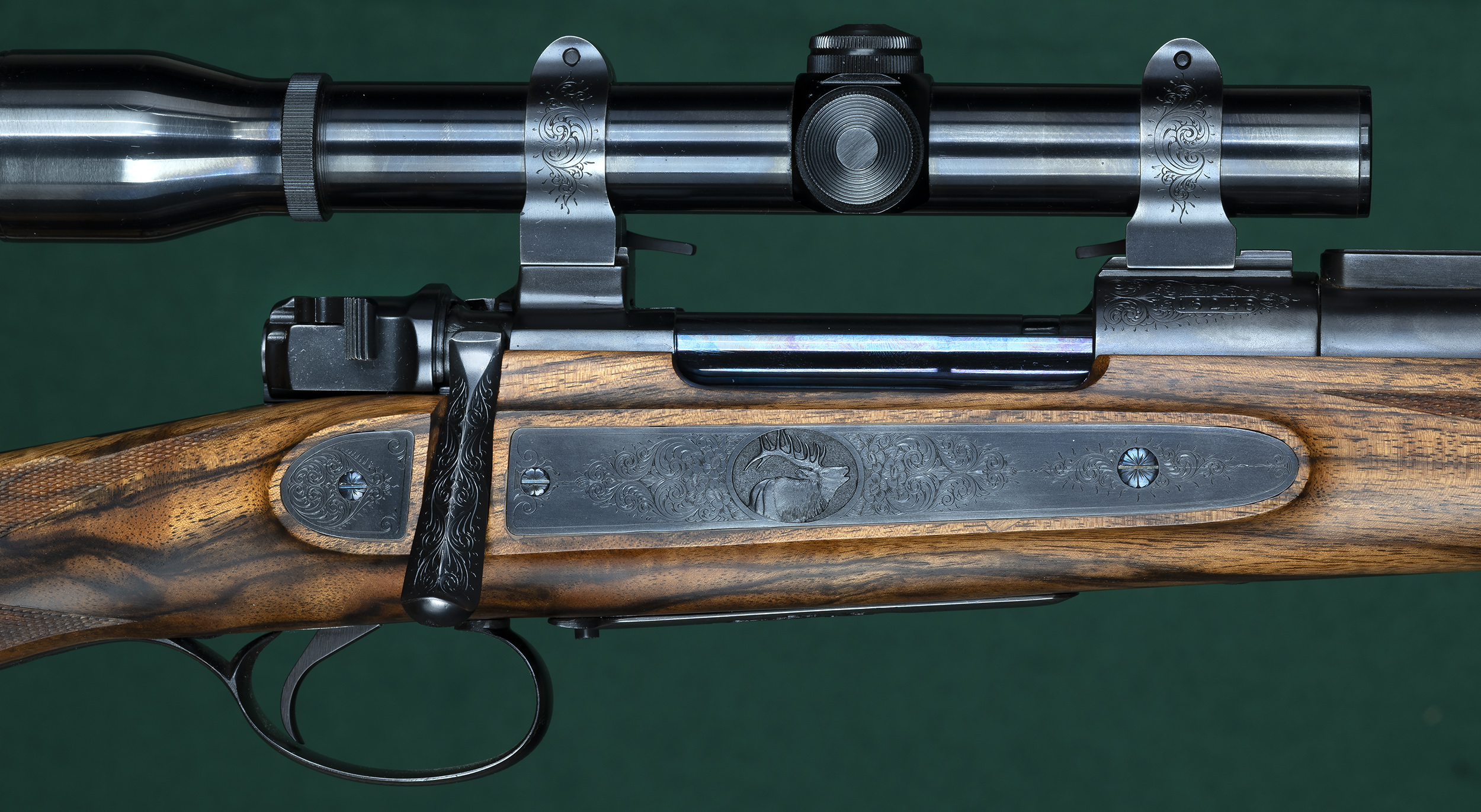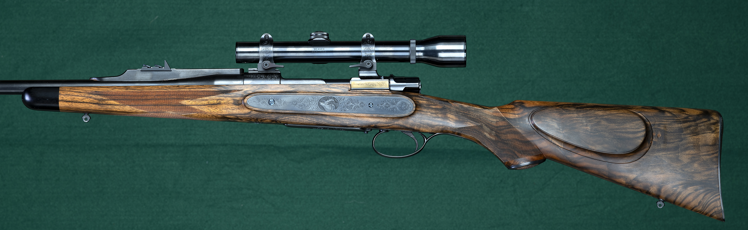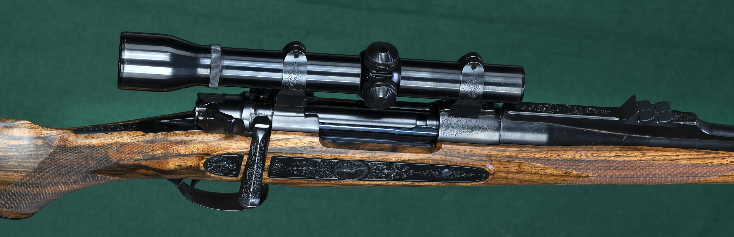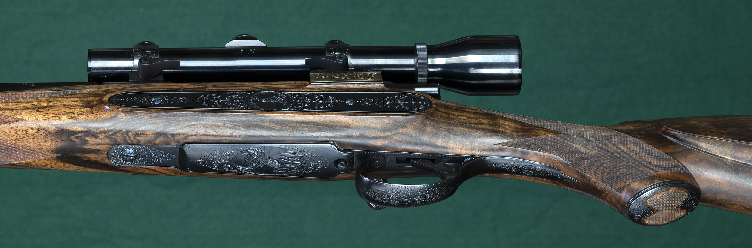 | | triggerguard, skeleton TG and buttplate, and scope rings. Metalwork by |