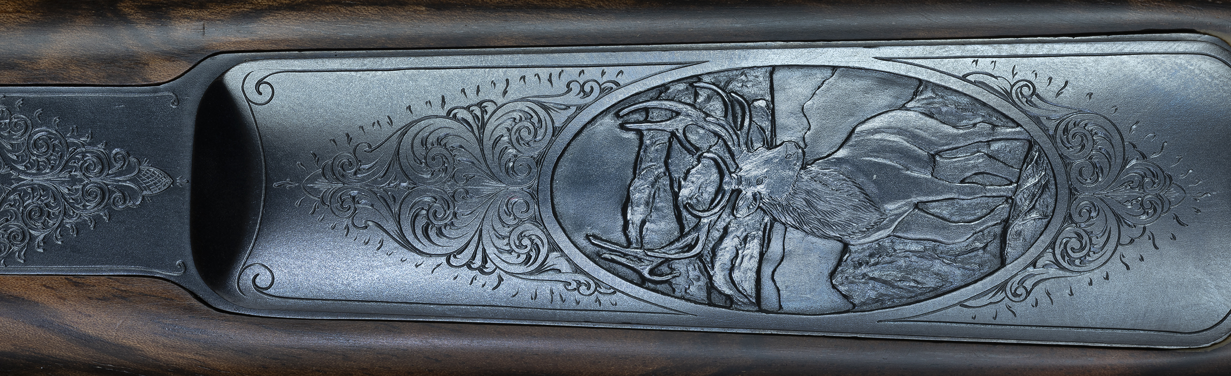 | | sideplates, Monarch of the Glen on floorplate, and scroll on quarter rib, |