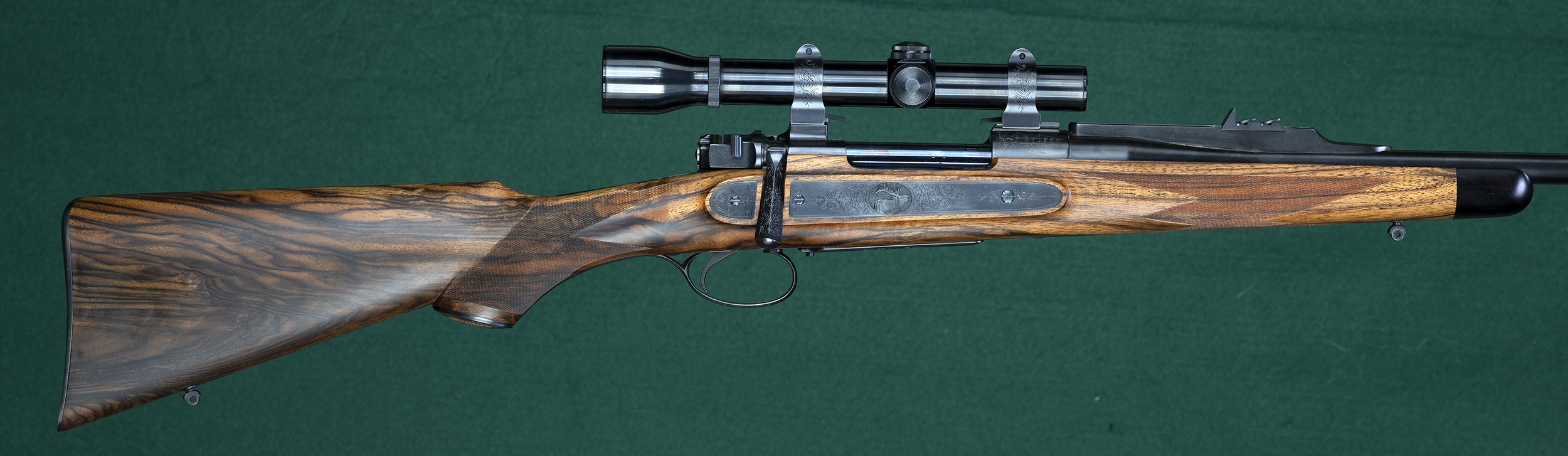 | | rib with 1 standing and 2 folding express sights. Mauser action with spoon |