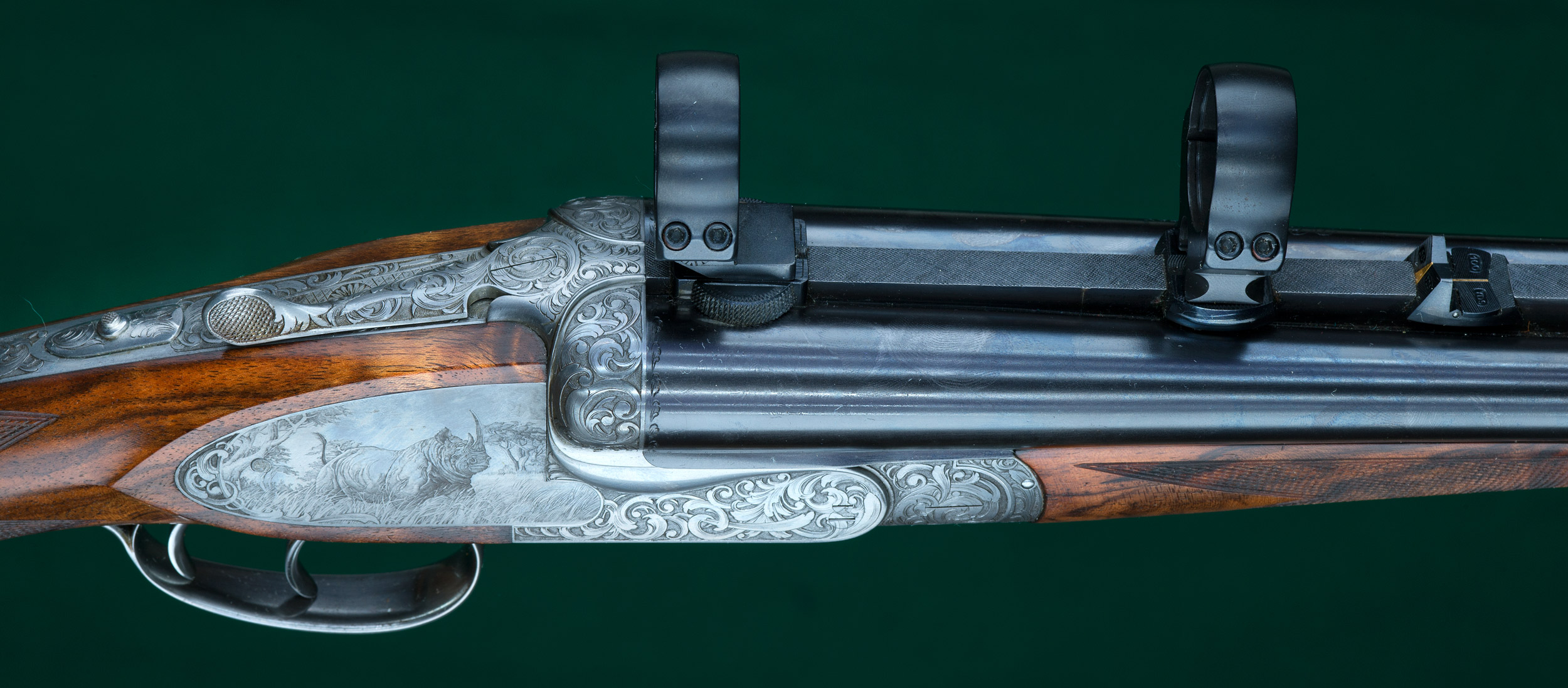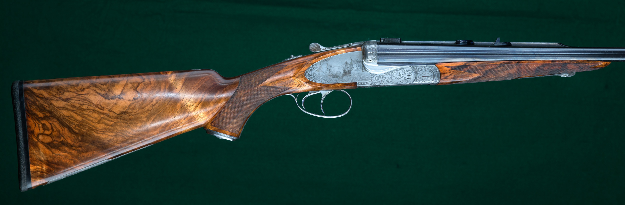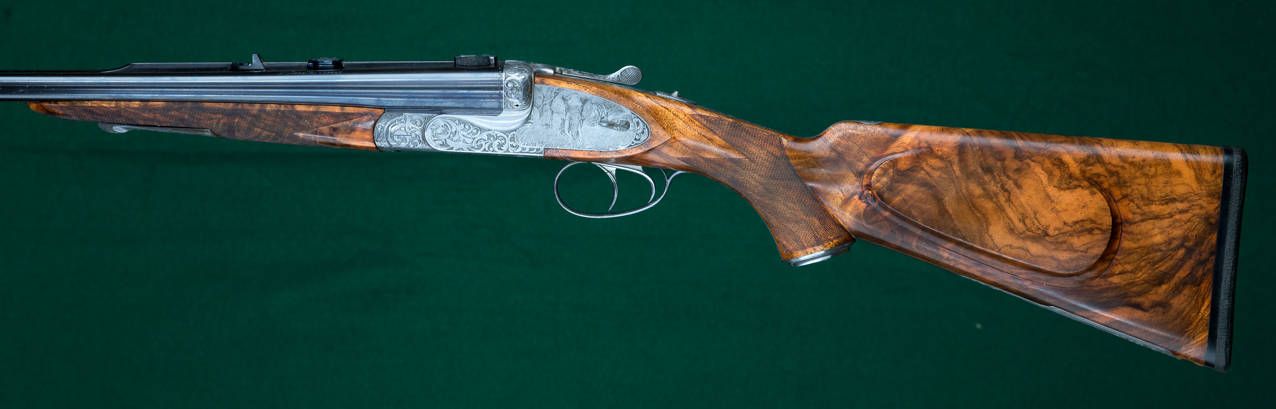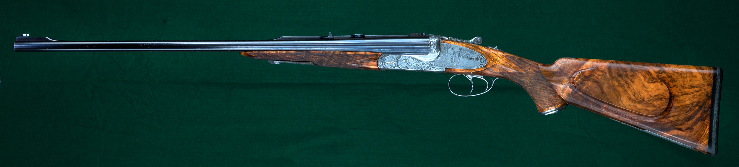 | | matted quarter rib with 1 standing and 1 folding gold-inlaid express sights |