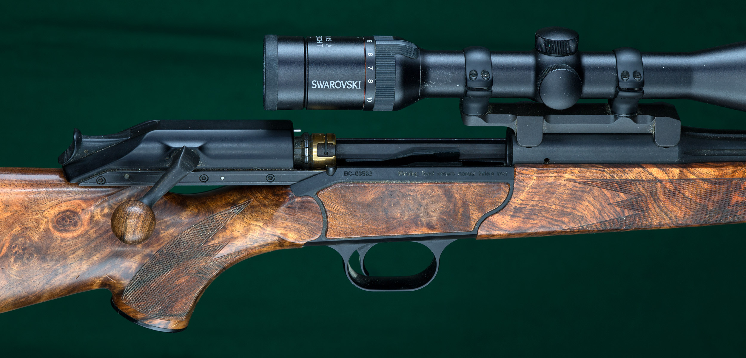 | | system. Swarovski 3-10x42A scope with fine duplex "PLEX" reticle on Blaser |