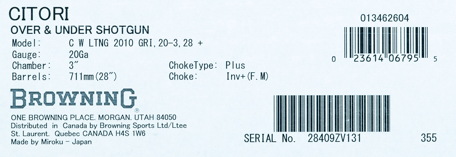 Browning Citori White Lightning 20 Gauge, 3" Chambers