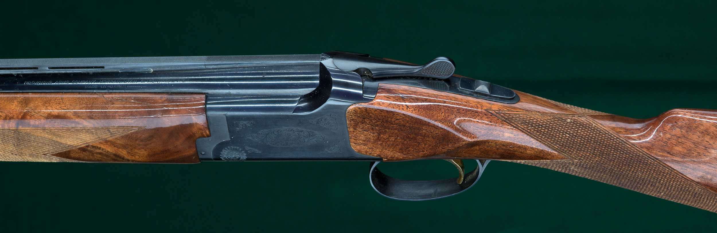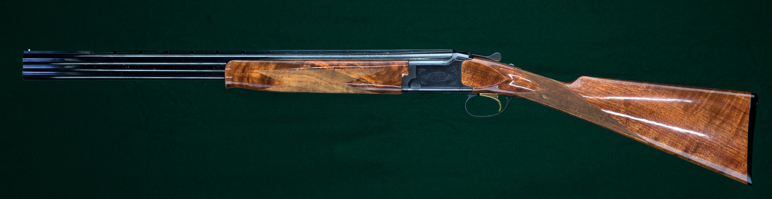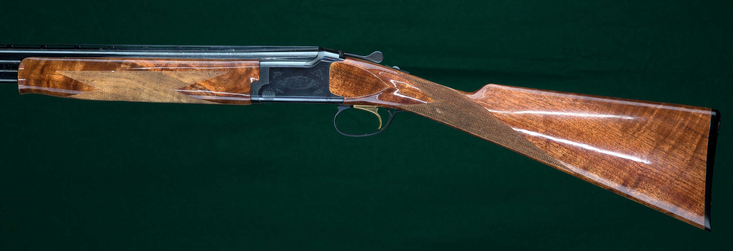 | | 24" O/U vent rib barrels with Invector chokes. 14 1/8" pull from gold-plated |