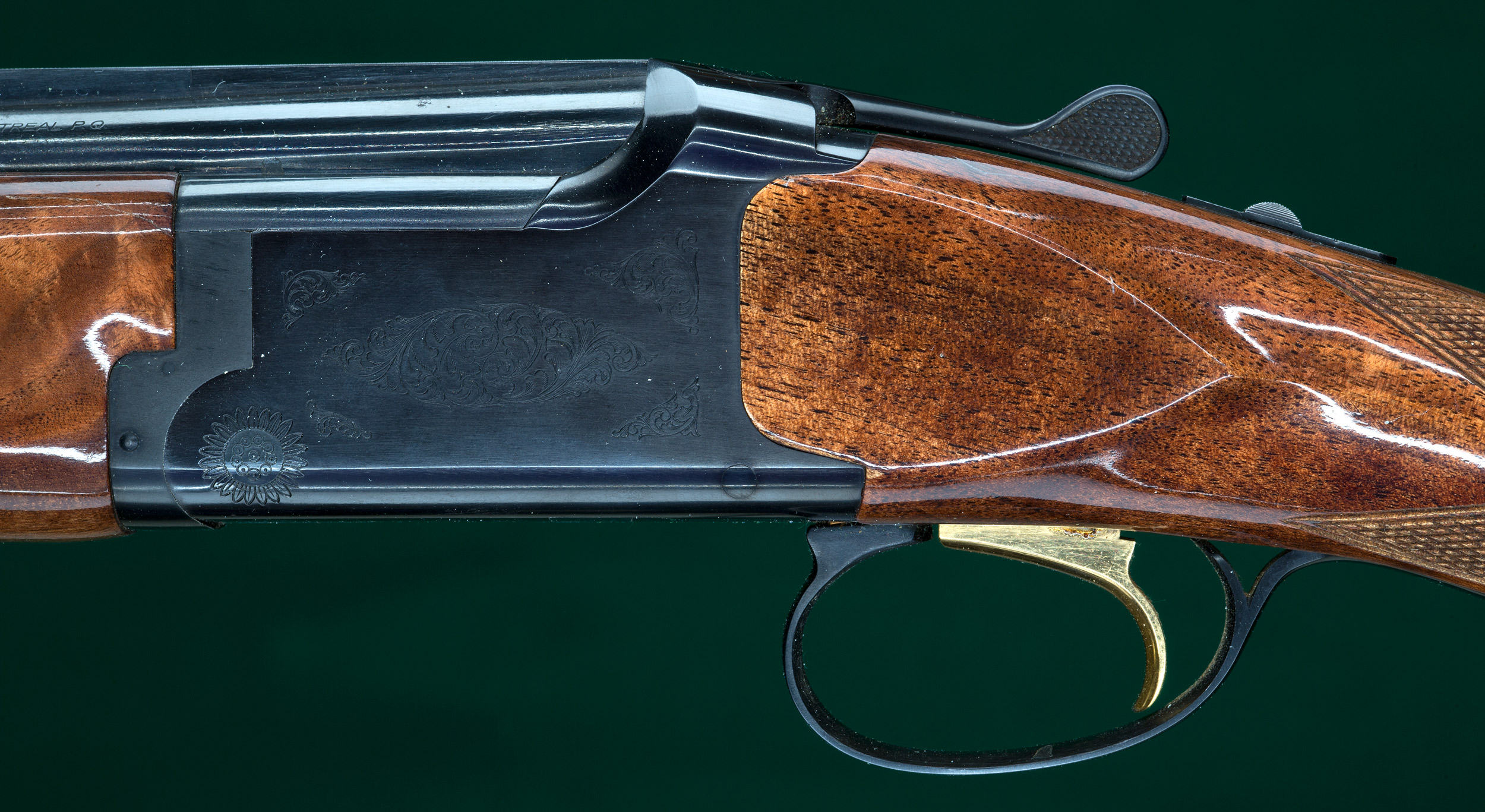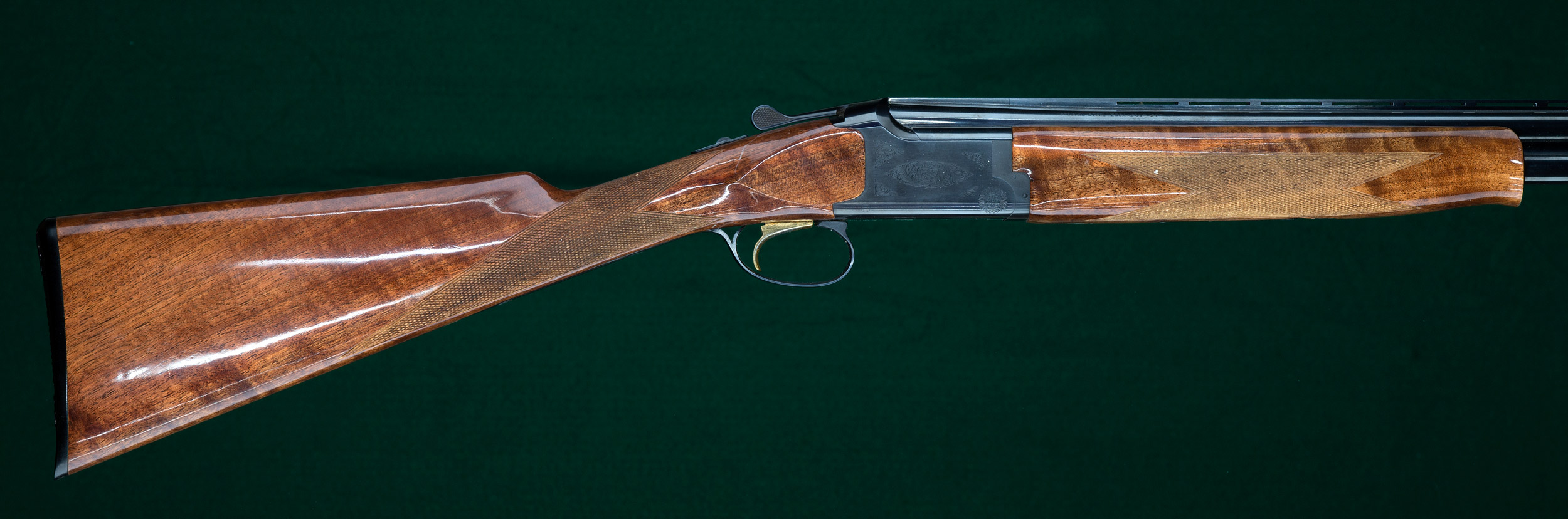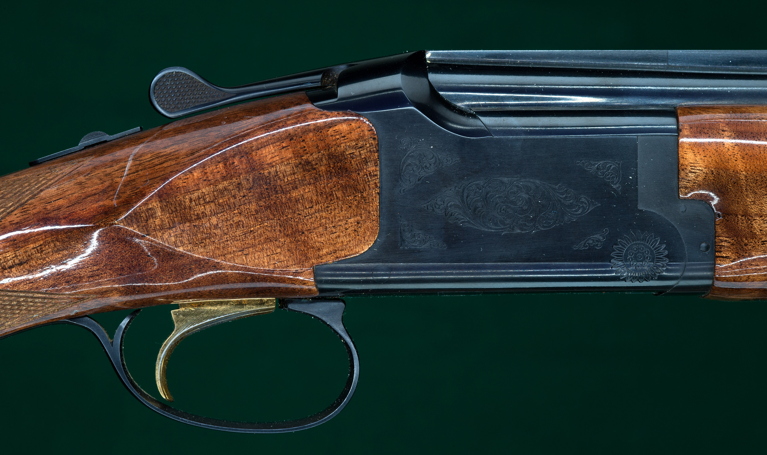 | | 24" O/U vent rib barrels with Invector chokes. 14 1/8" pull from gold-plated |