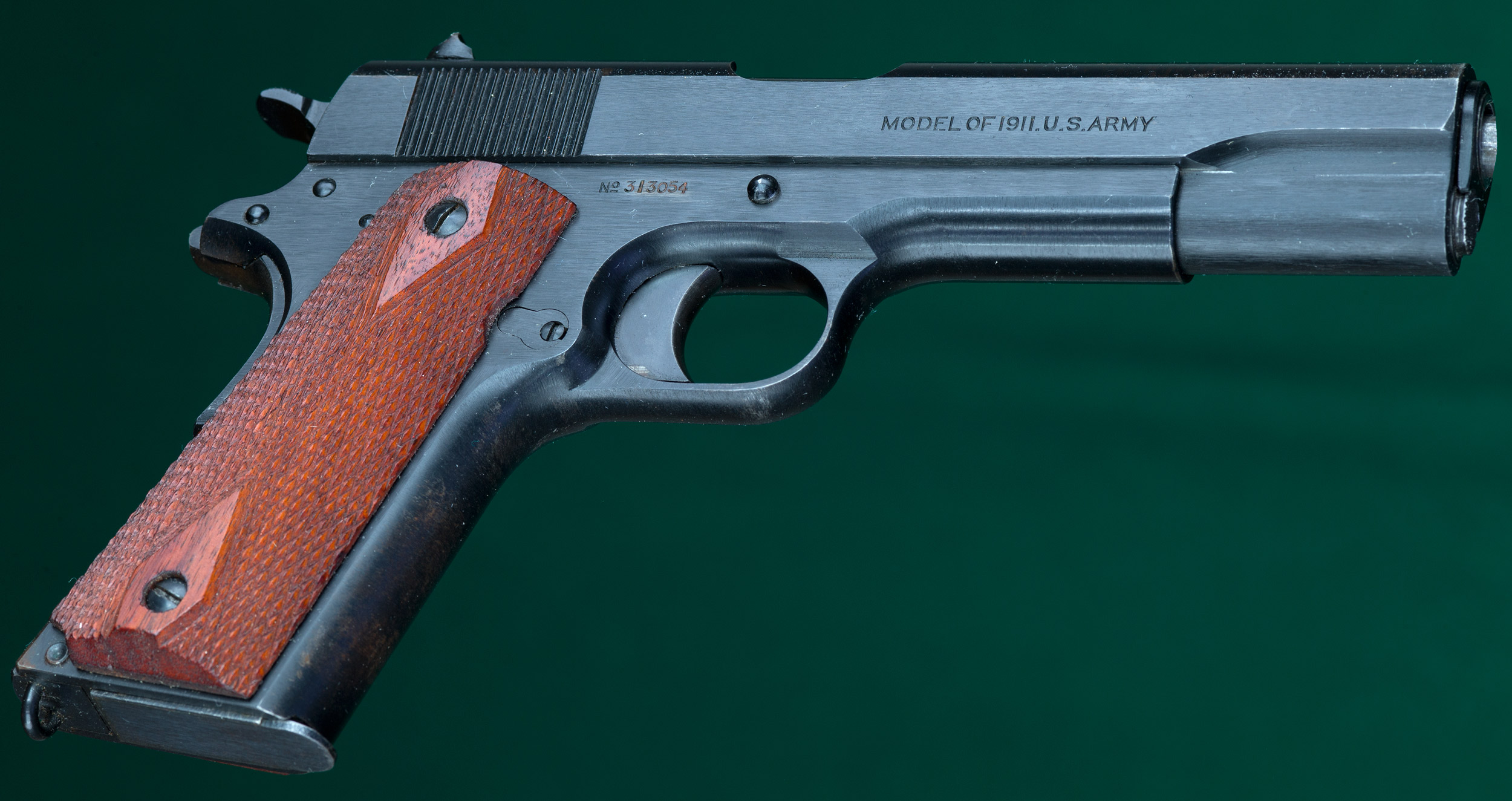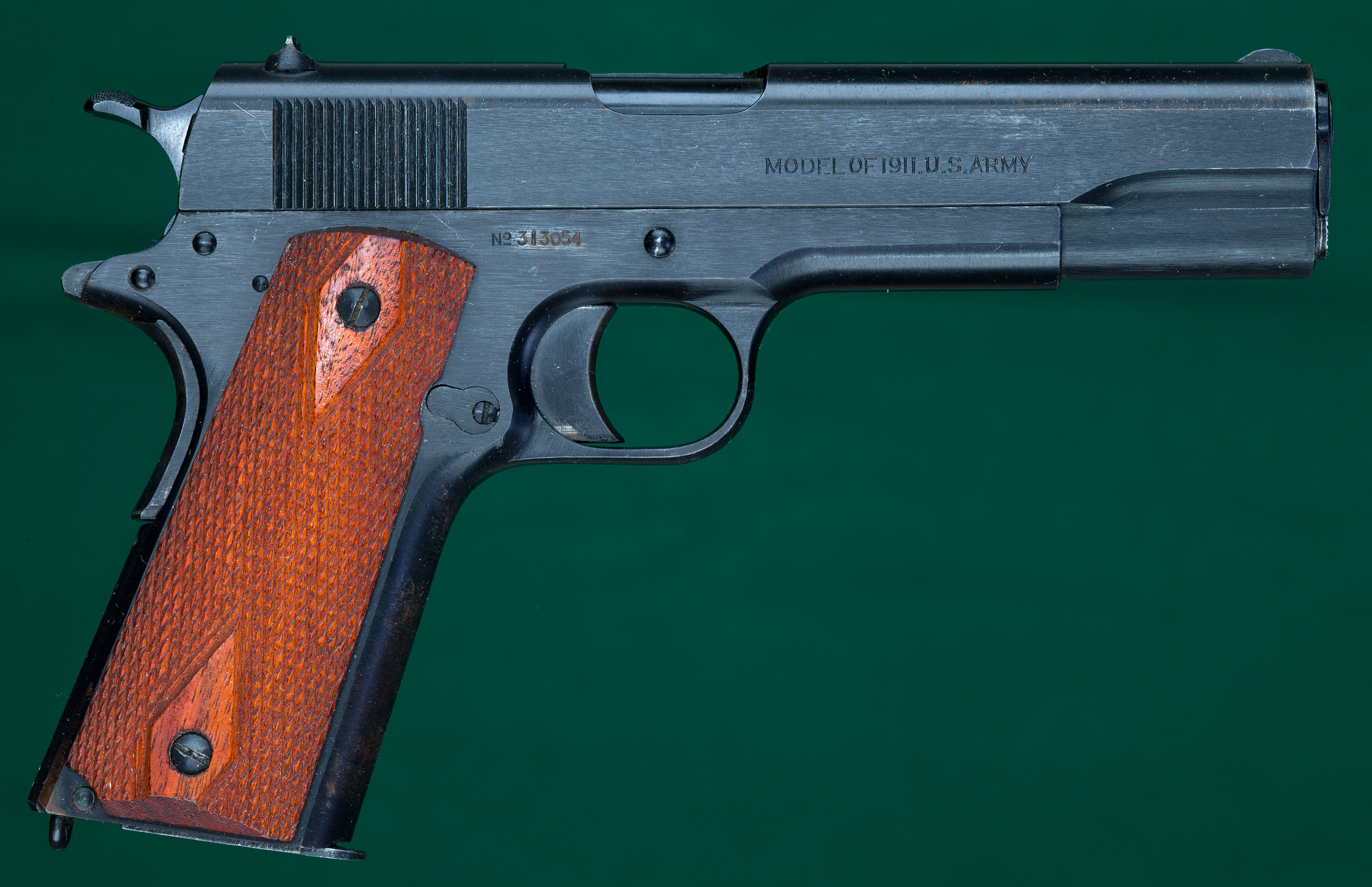 | | Springfield Armory. Checkered diamond walnut grips. S/N 313054. 99% |