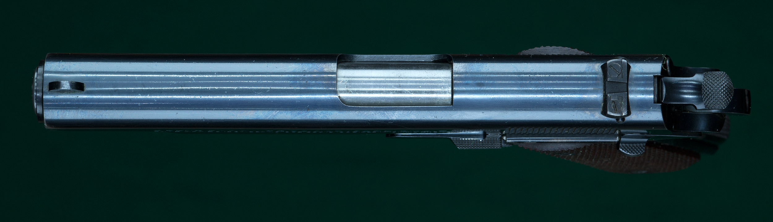 | 4 3/4" barrel. Blade front sight. Adjustable rear sight. Fully checkered walnut |