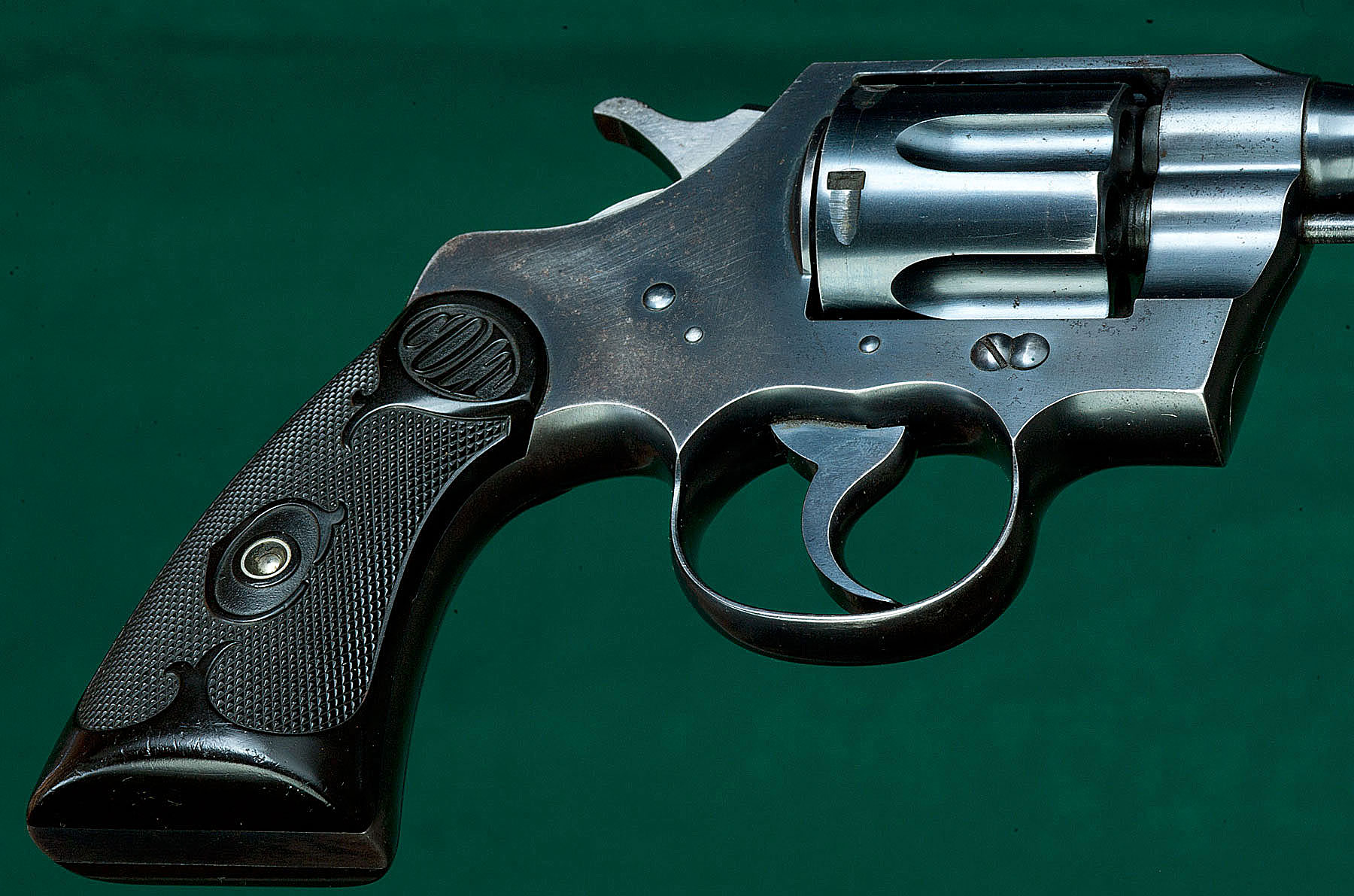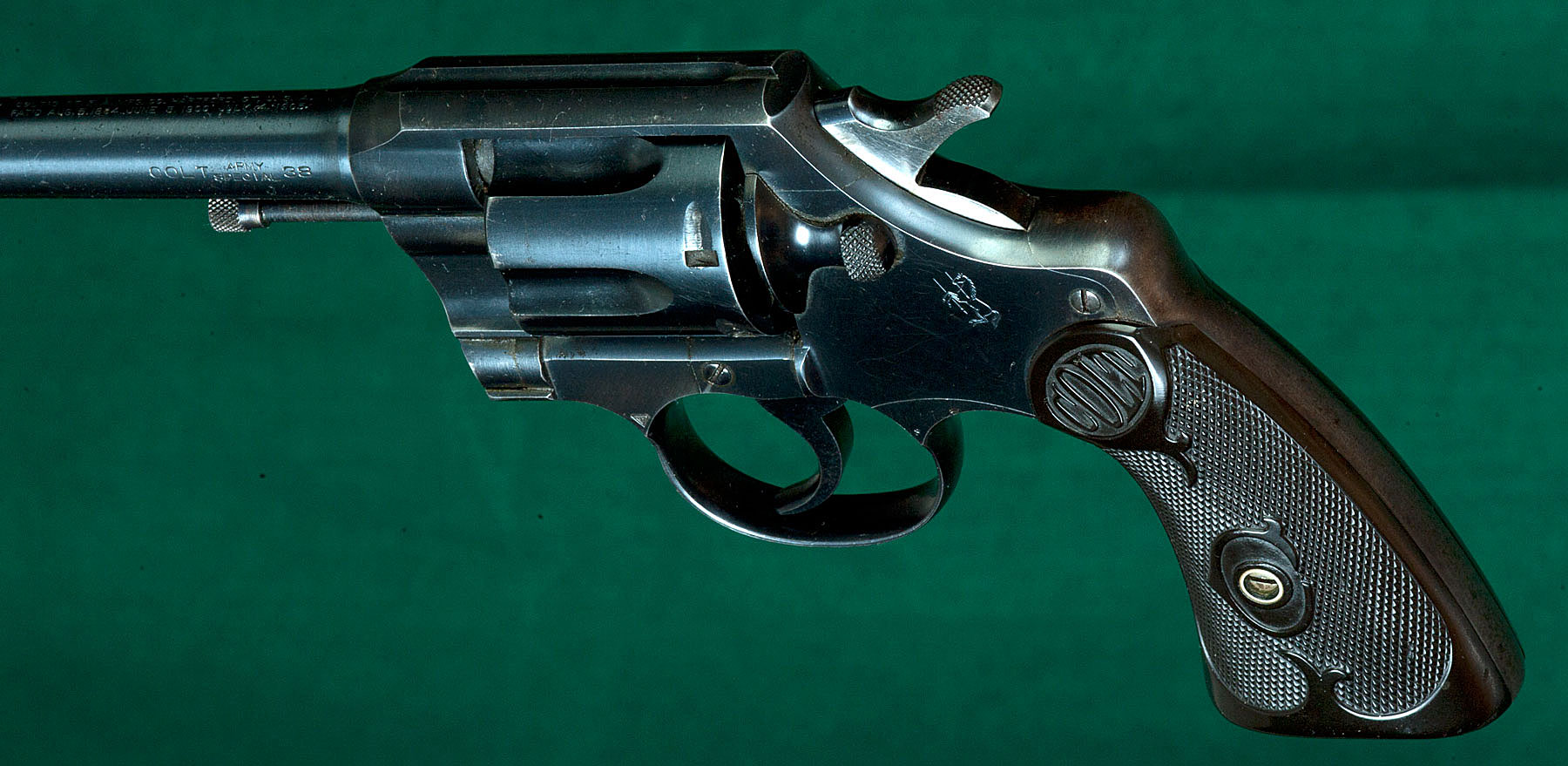 | Checkered black COLT hardrubber grips. Mfd 1922. 97%blue. $750. |