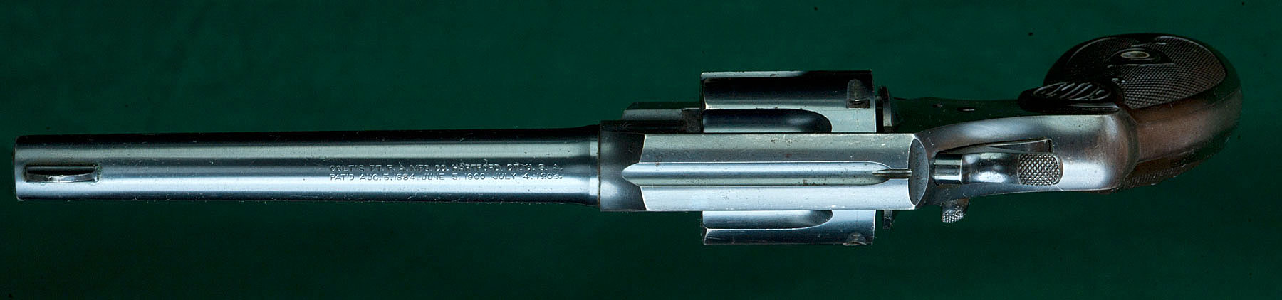 | 6" barrel with fixed sights. Checkered hammer and cylinder release. |