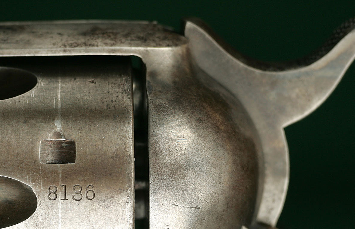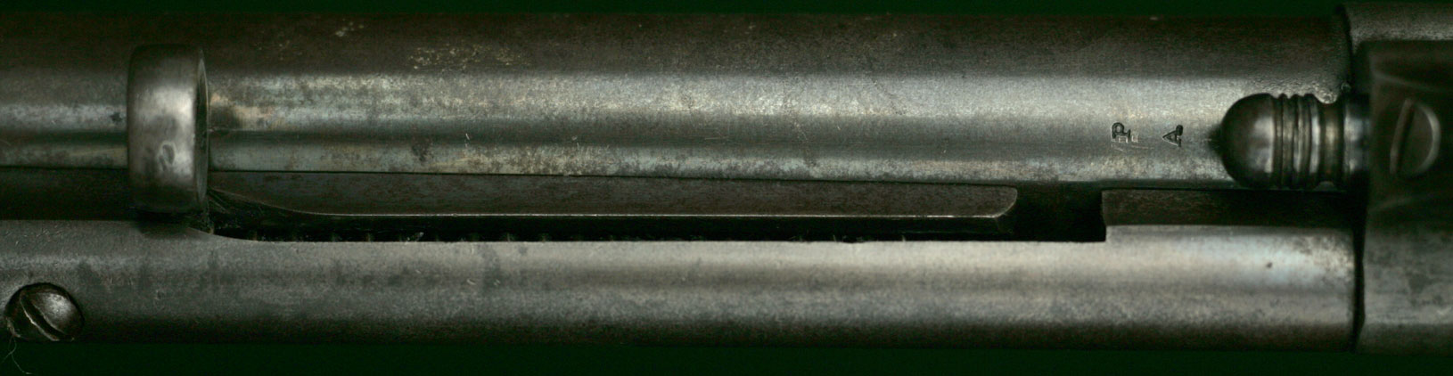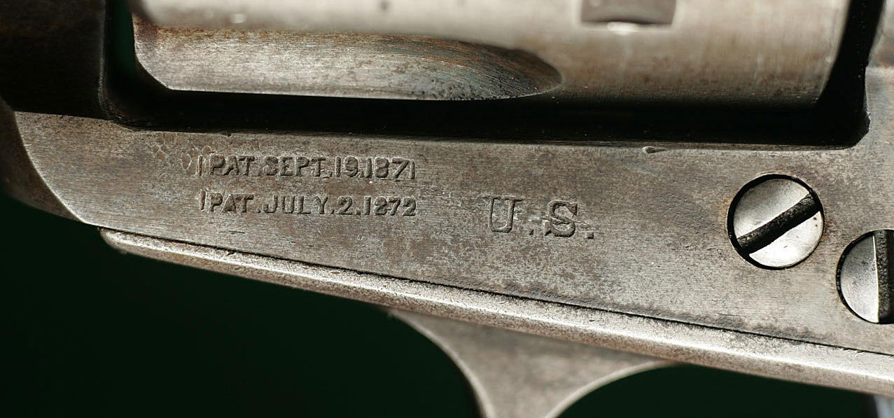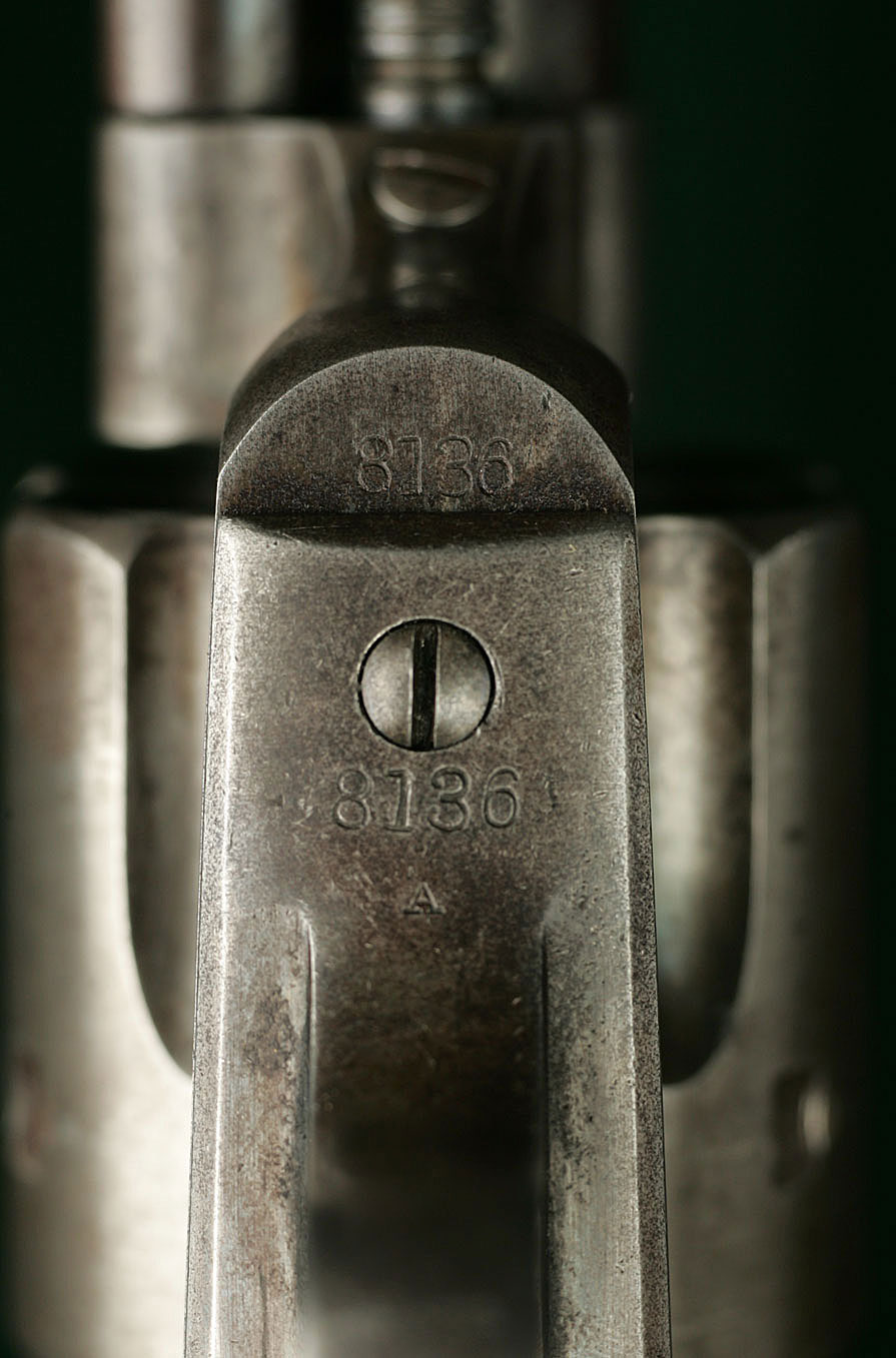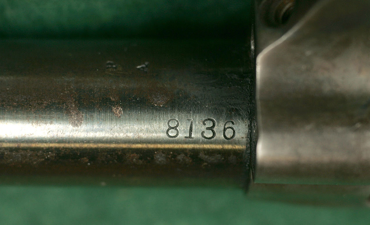 | on barrel under ejector rod housing. Manufactured in 1874. Traces original |