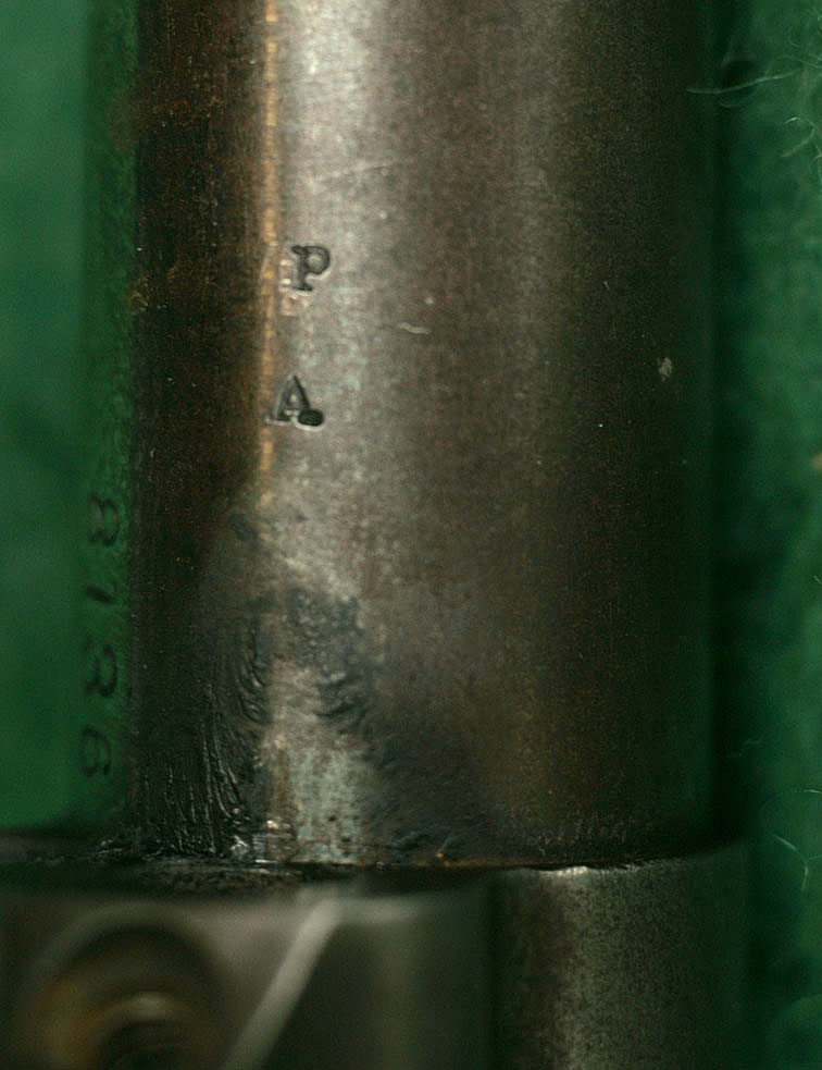 | Small type US marking. Bullseye ejector rod tab. Ainsworth's "A" stamped |