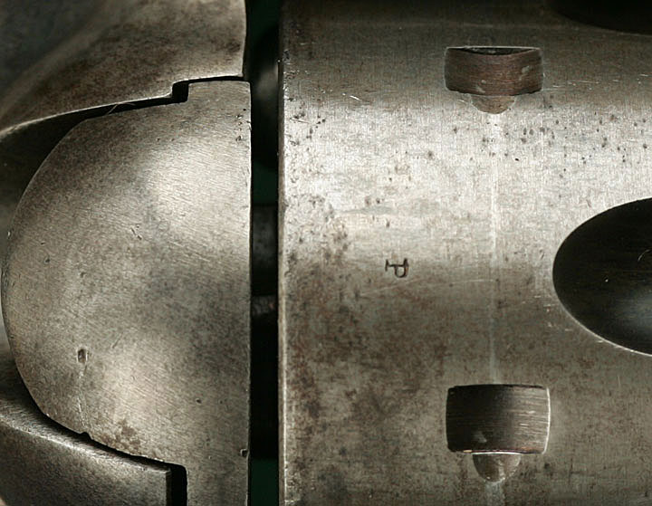 | buttstrap. P underside barrel and on cylinder. C inside hammer slot. C and G |