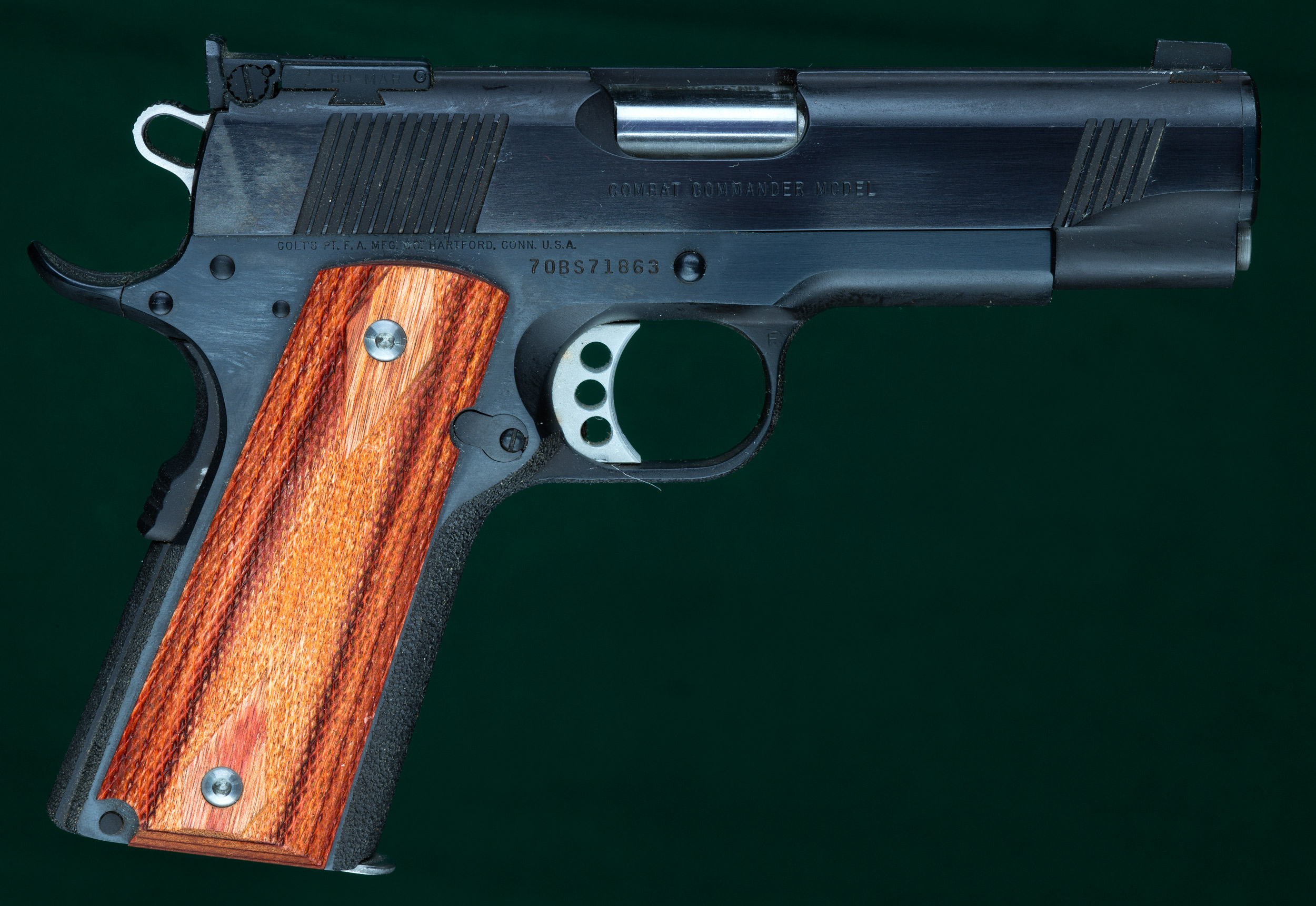 | guide rod. Duckbill grip safety. Chamfered magazine well. Lightened hammer |