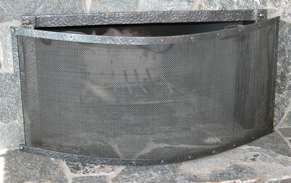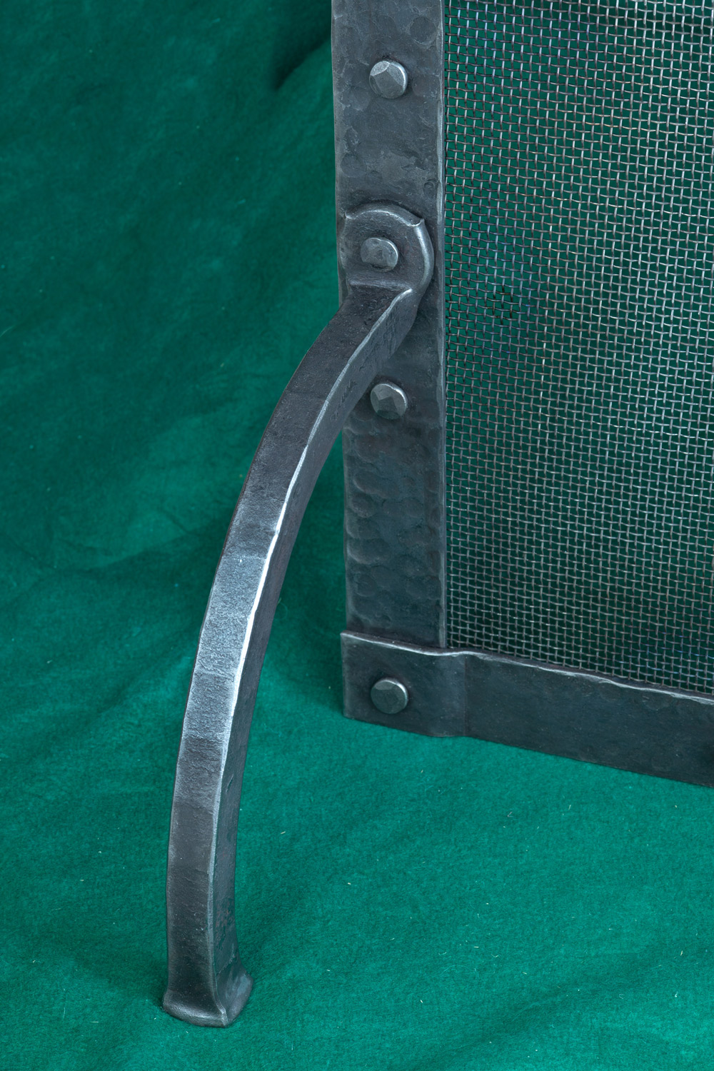 Freestanding Firescreen. Made to measure to fit your fireplace. Single panel or double panel (for very large fireplace). Top handles or side handles (depending on width of screen). Broad-hammered or peen-hammered surface.