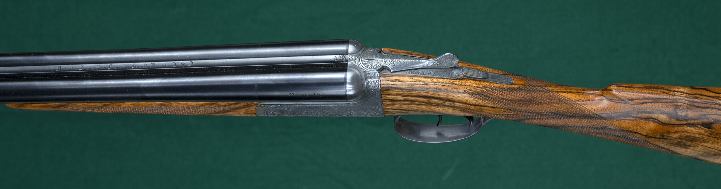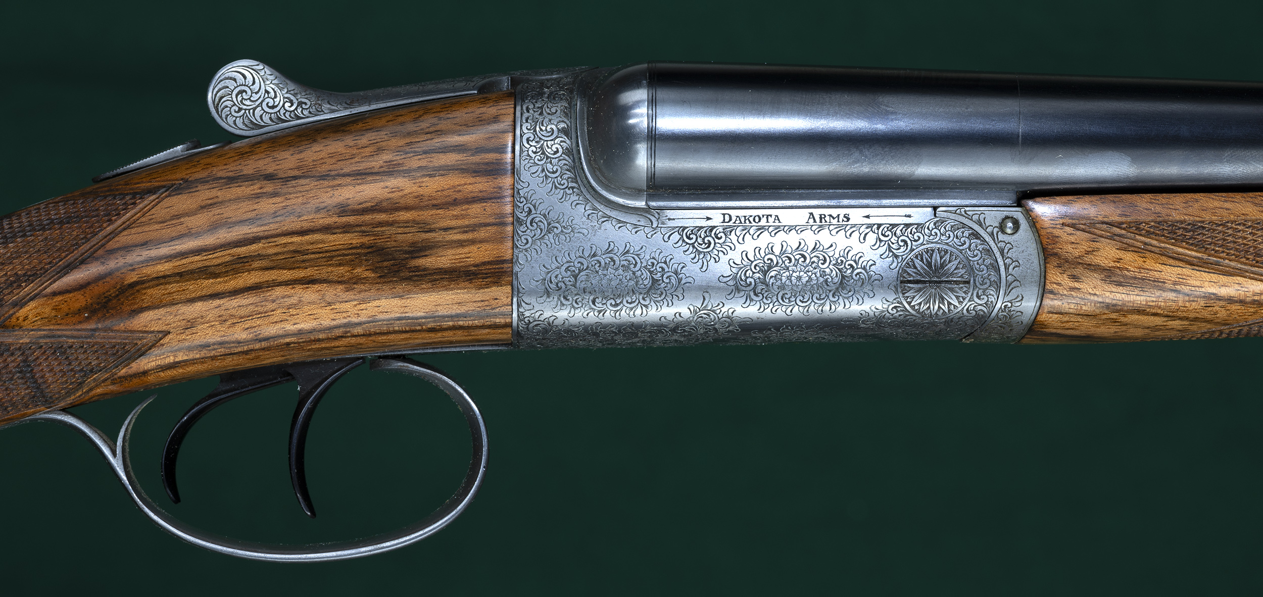 | | in gold. Weight: 6lbs, 4oz. The first shotgun made in the Dakota shop in |