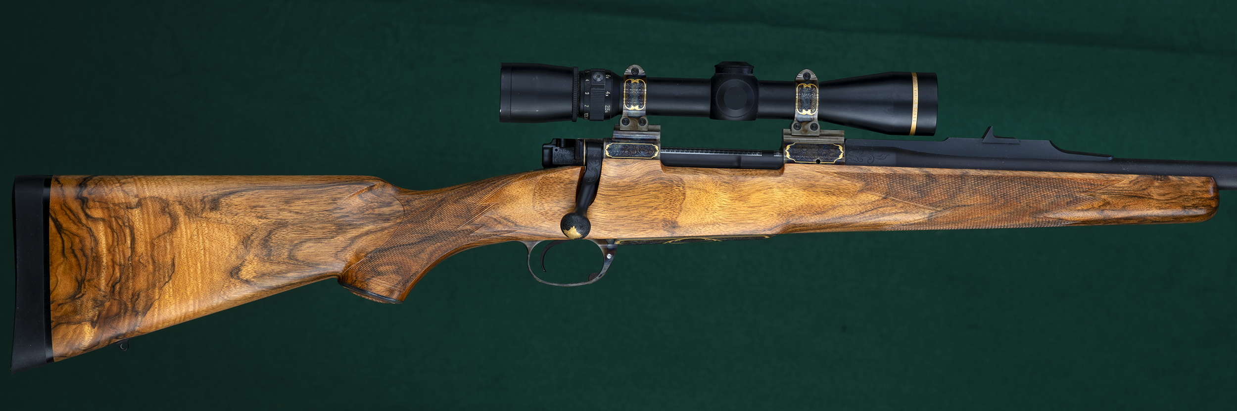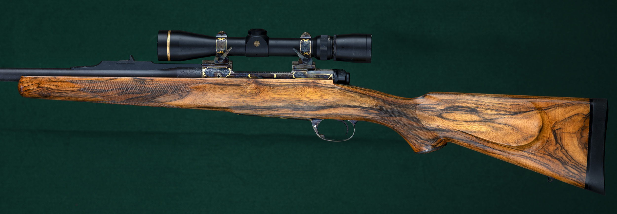 | | gold inlaid bolt knob, hinged straddle floorplate. Leupold Vari-X III 2.5-8x |