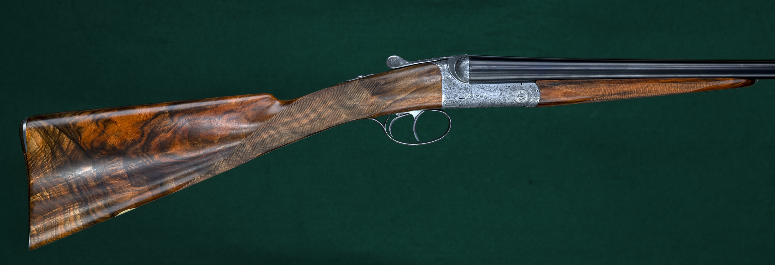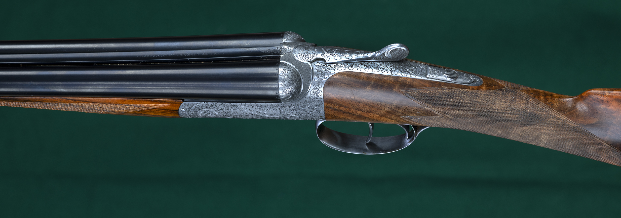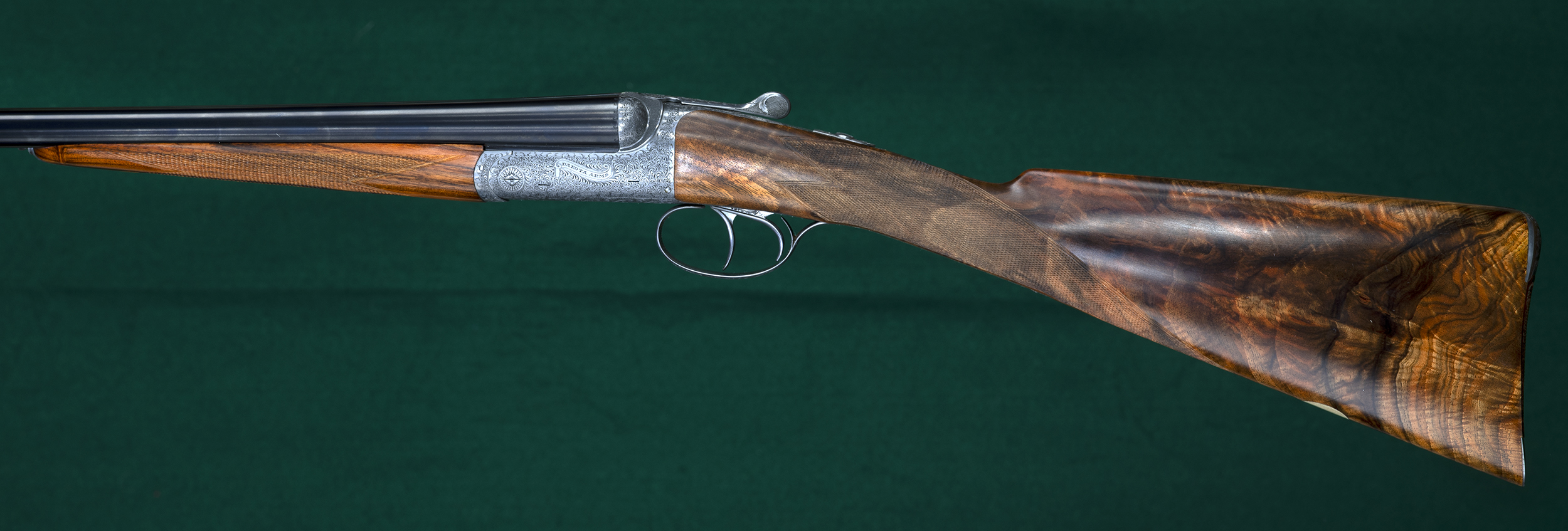 | | splinter forend, straight English grip, classic point-pattern checkering, and |