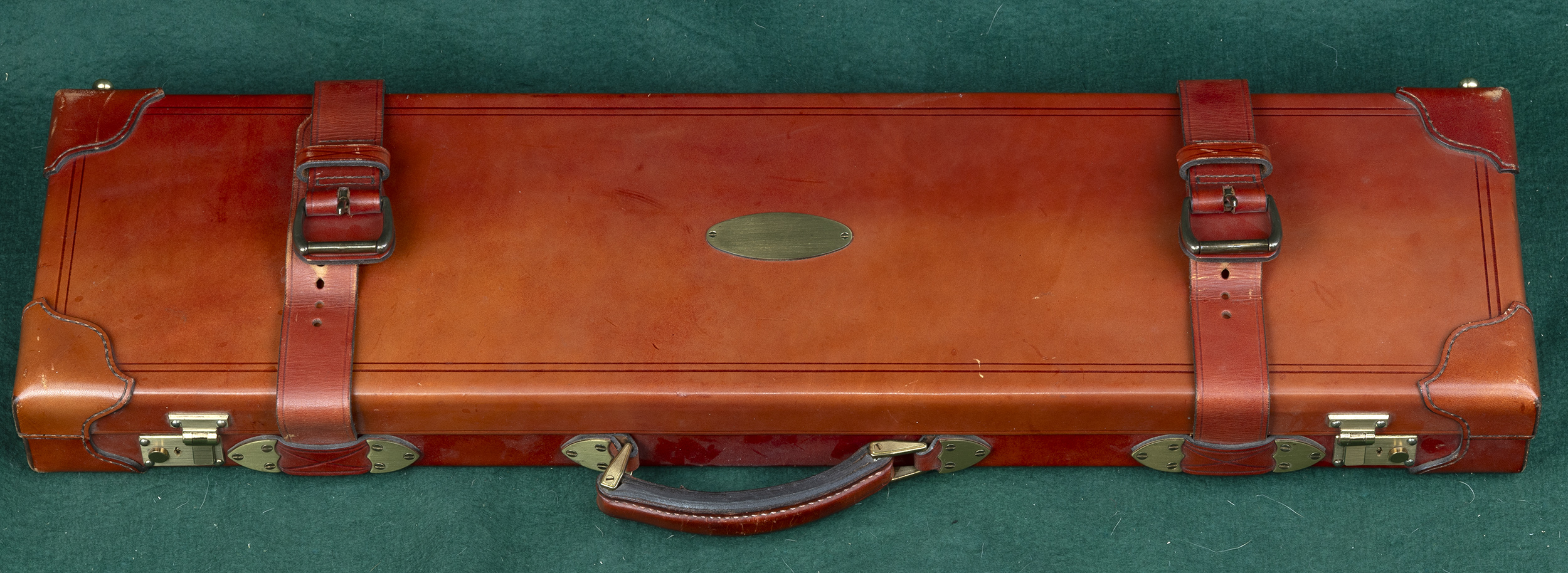 | | condition. In oak & leather trunk case with maker's label and leather- |