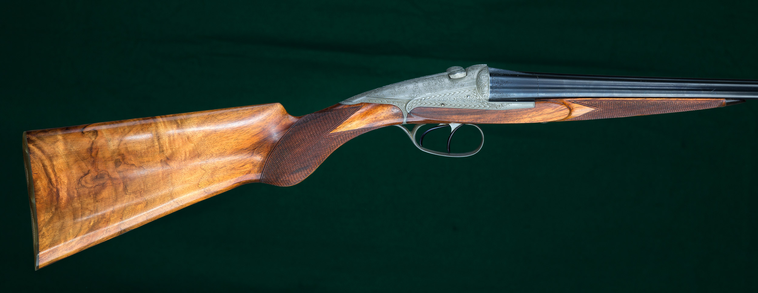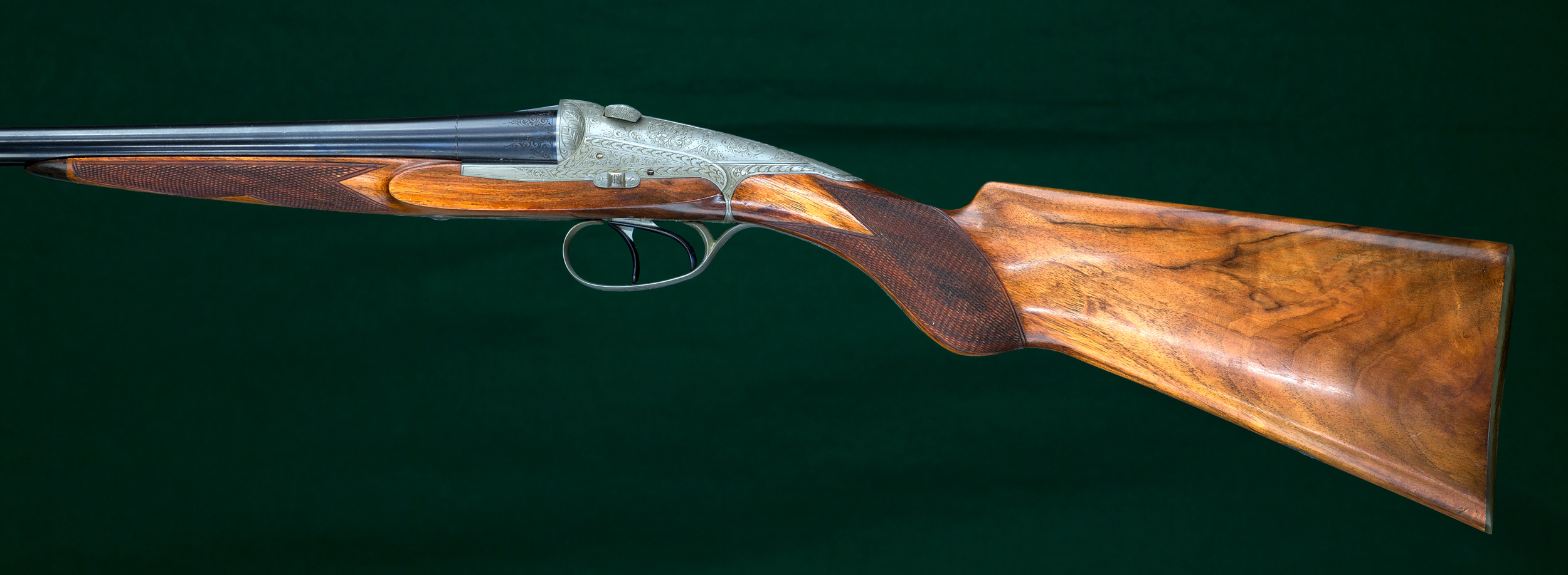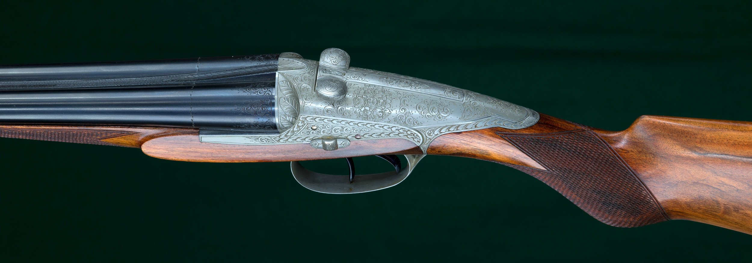 | | extensive English rose & scroll engraving, automatic ejectors, obturating breeches, |